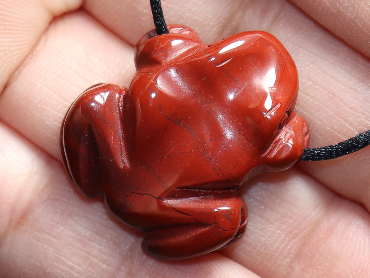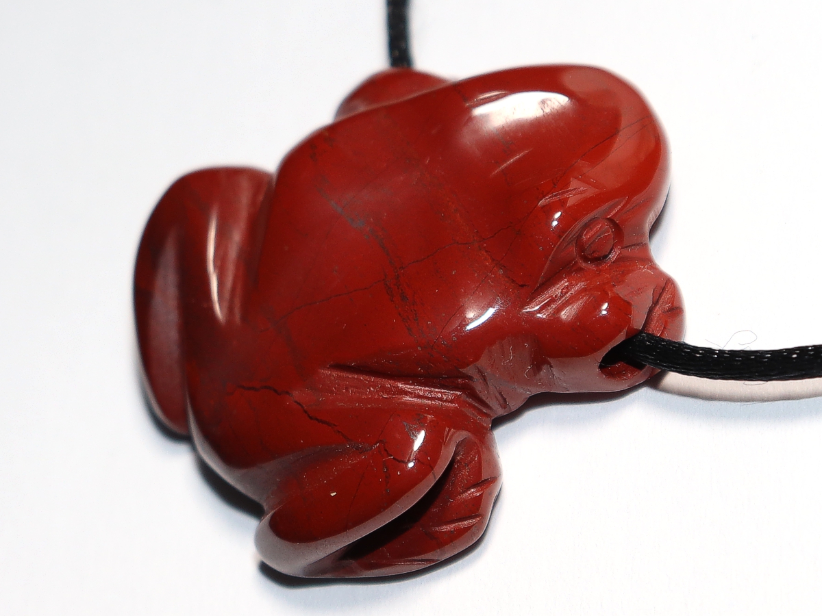 Die Halskette mit dem Frosch aus rotem Jaspis wird nach Ihren Angaben individualisiert. Sie haben die Wahl zwischen einem schwarzen Band mit einem Verschluss aus Edelstahl oder einer Kette aus Silber 925.