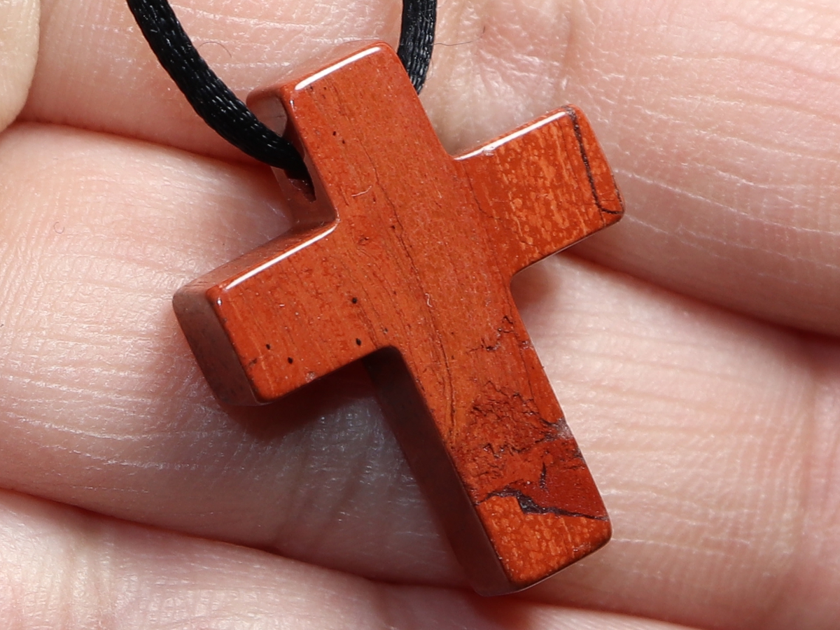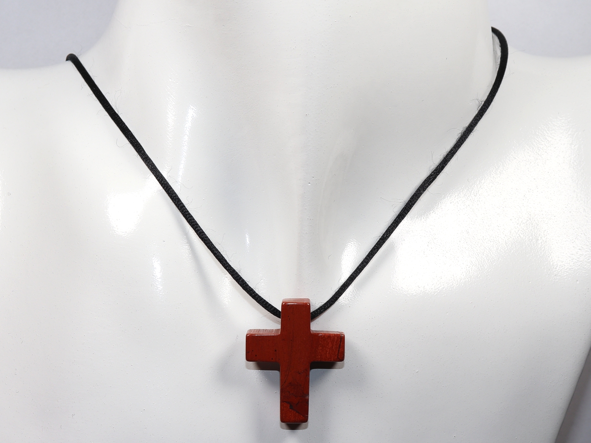 Die Halskette mit dem Kreuz aus rotem Jaspis wird nach Ihren Angaben individualisiert. Sie haben die Wahl zwischen einem schwarzen Band mit einem Verschluss aus Edelstahl oder einer Kette aus Silber 925.