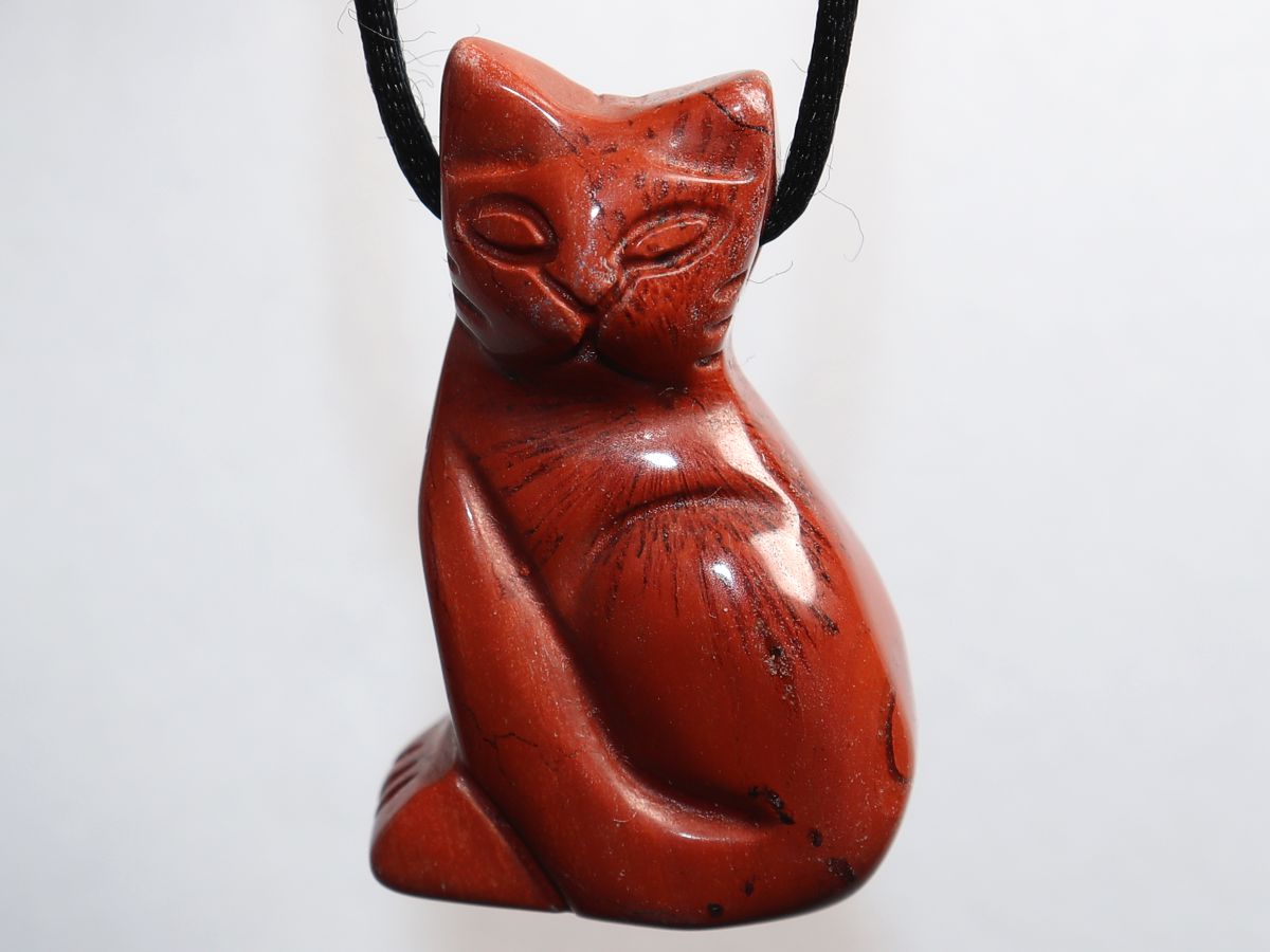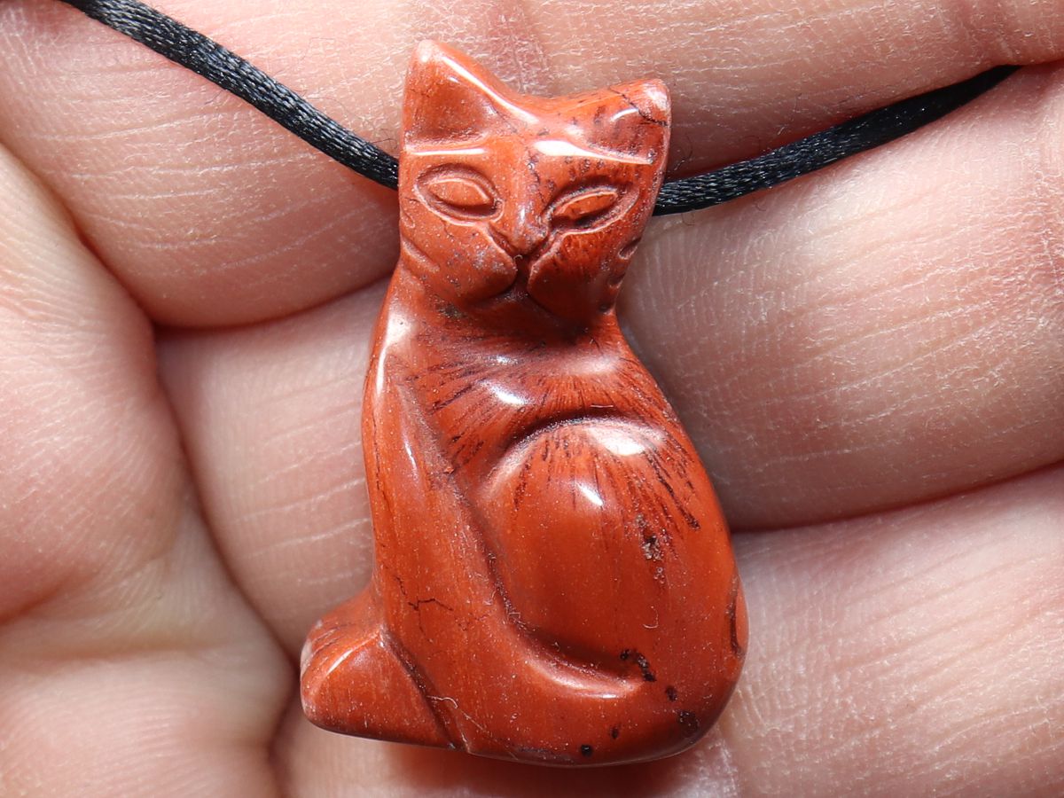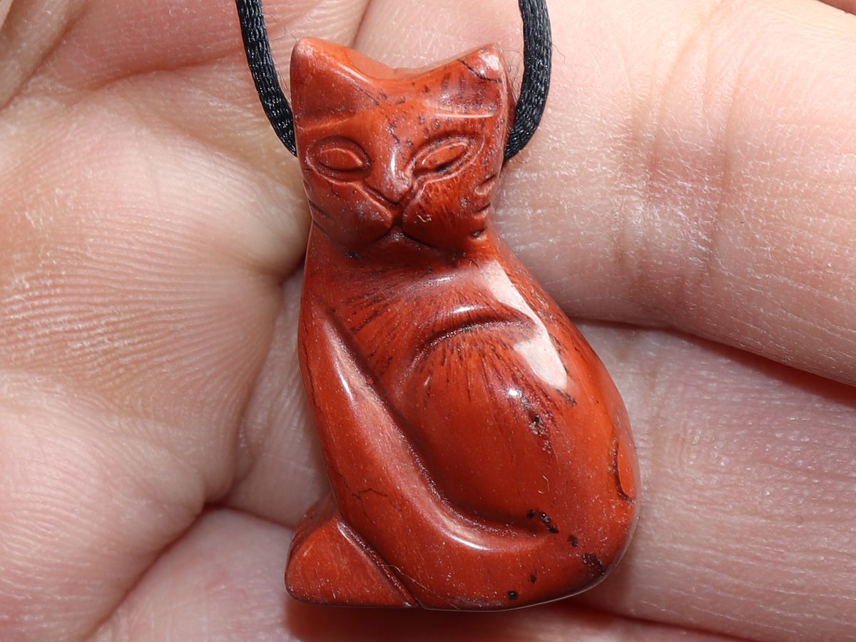 Die Halskette mit der Katze aus rotem Jaspis wird nach Ihren Angaben individualisiert. Sie haben die Wahl zwischen einem schwarzen Band mit einem Verschluss aus Edelstahl oder einer Kette aus Silber 925.