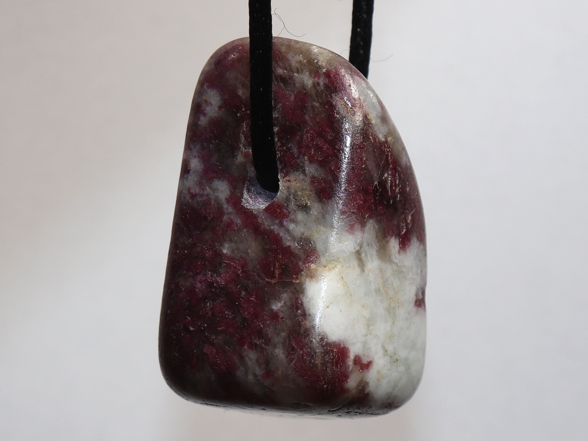 Die Halskette mit rotem Turmalin (Rubellit) wird nach Ihren Angaben individualisiert. Sie haben die Wahl zwischen einem schwarzen Band mit einem Verschluss aus Edelstahl oder einer Kette aus Silber 925.