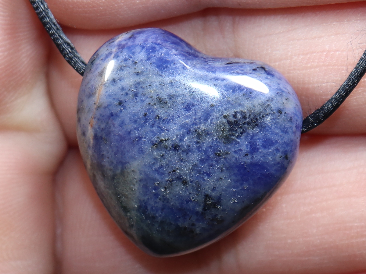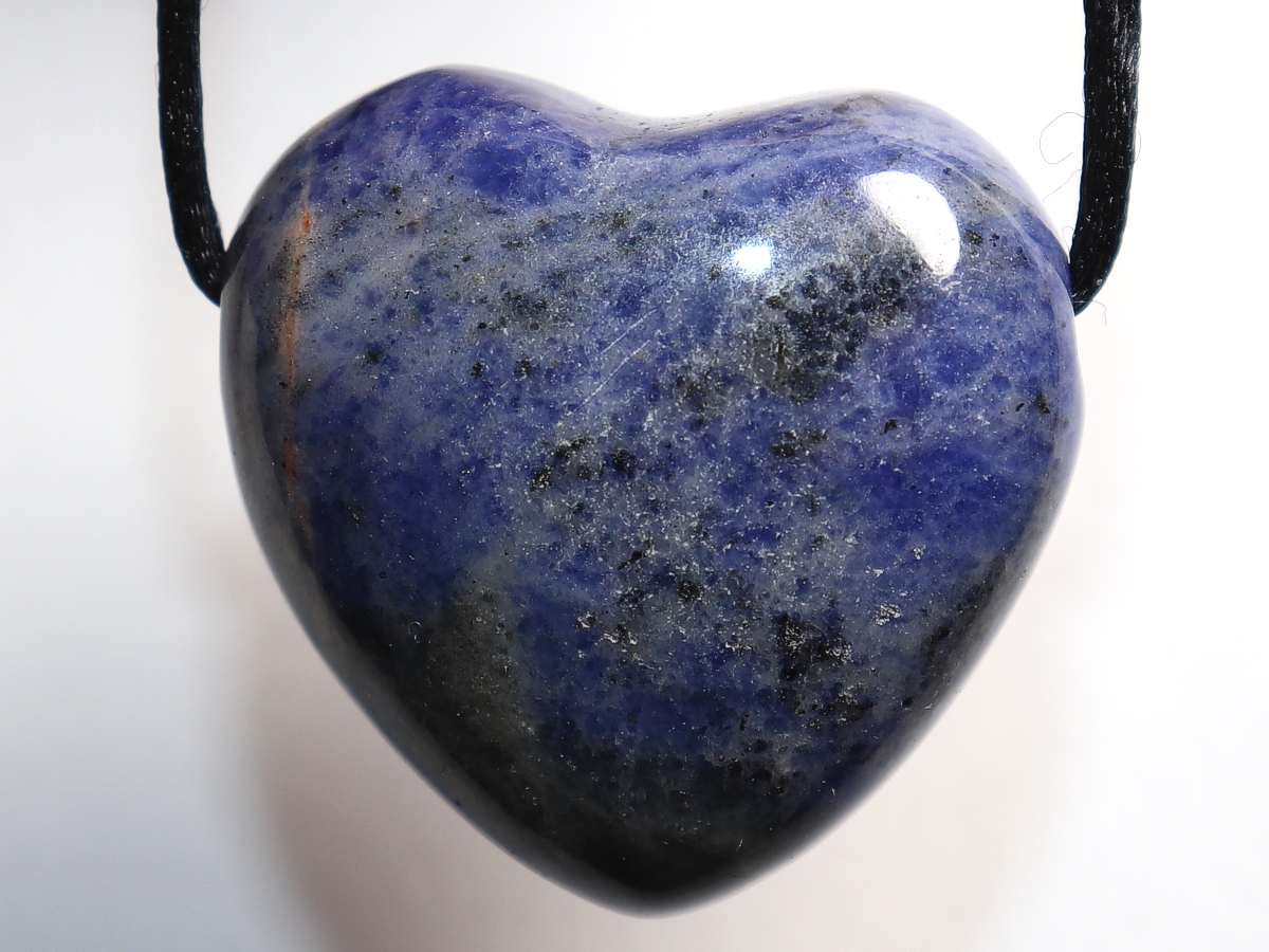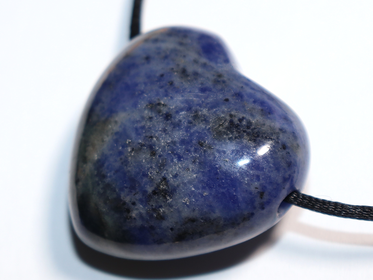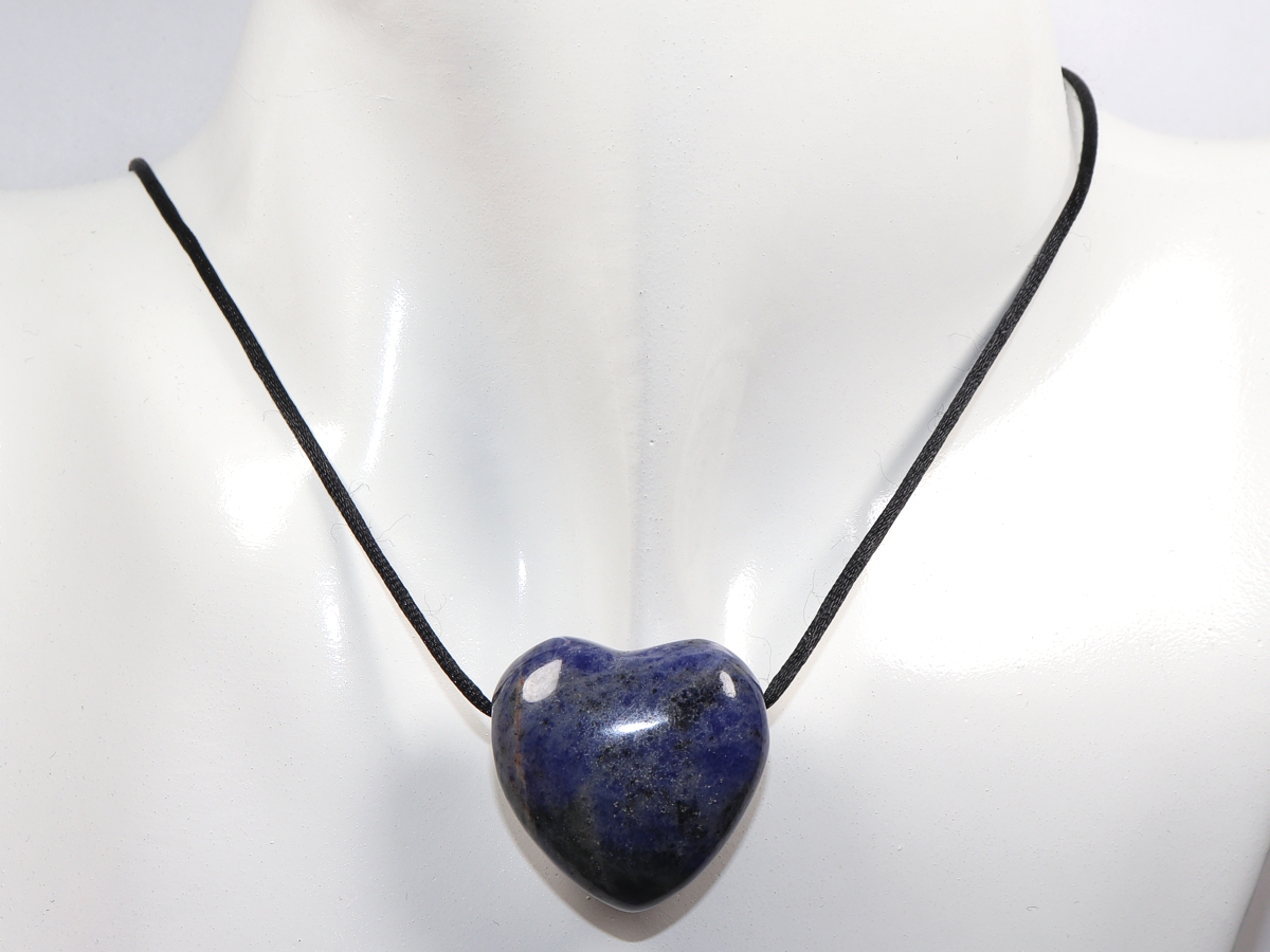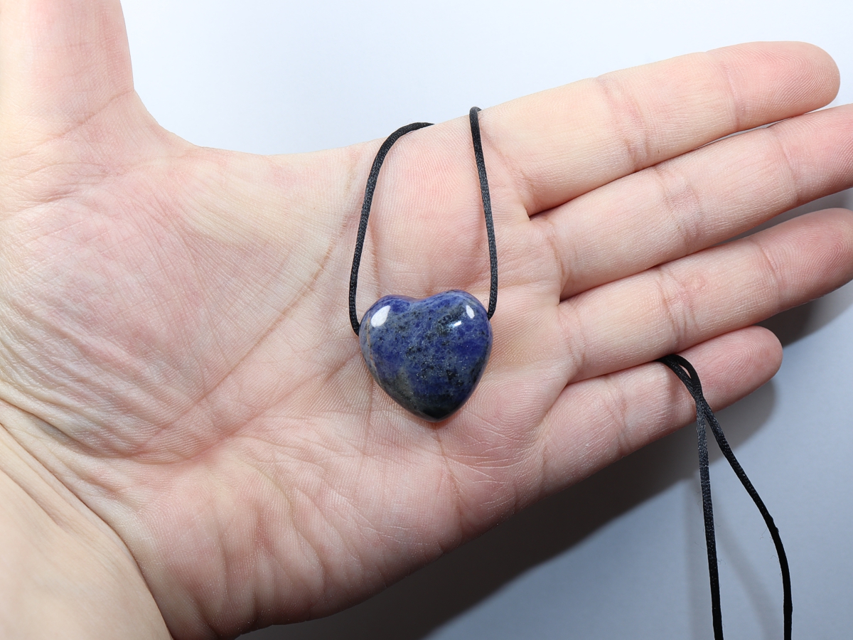 Die Halskette mit dem Herz aus Sodalith wird nach Ihren Angaben individualisiert. Sie haben die Wahl zwischen einem schwarzen Band mit einem Verschluss aus Edelstahl oder einer Kette aus Silber 925.