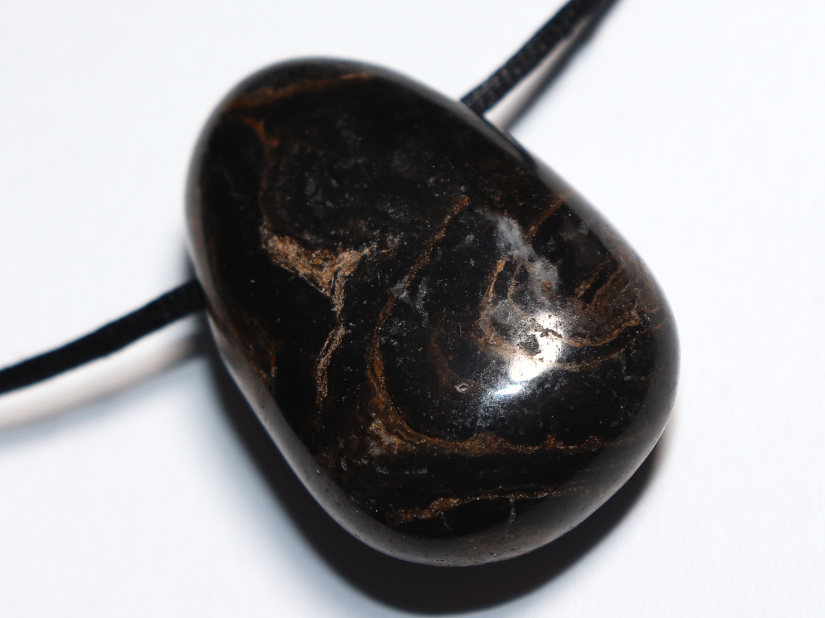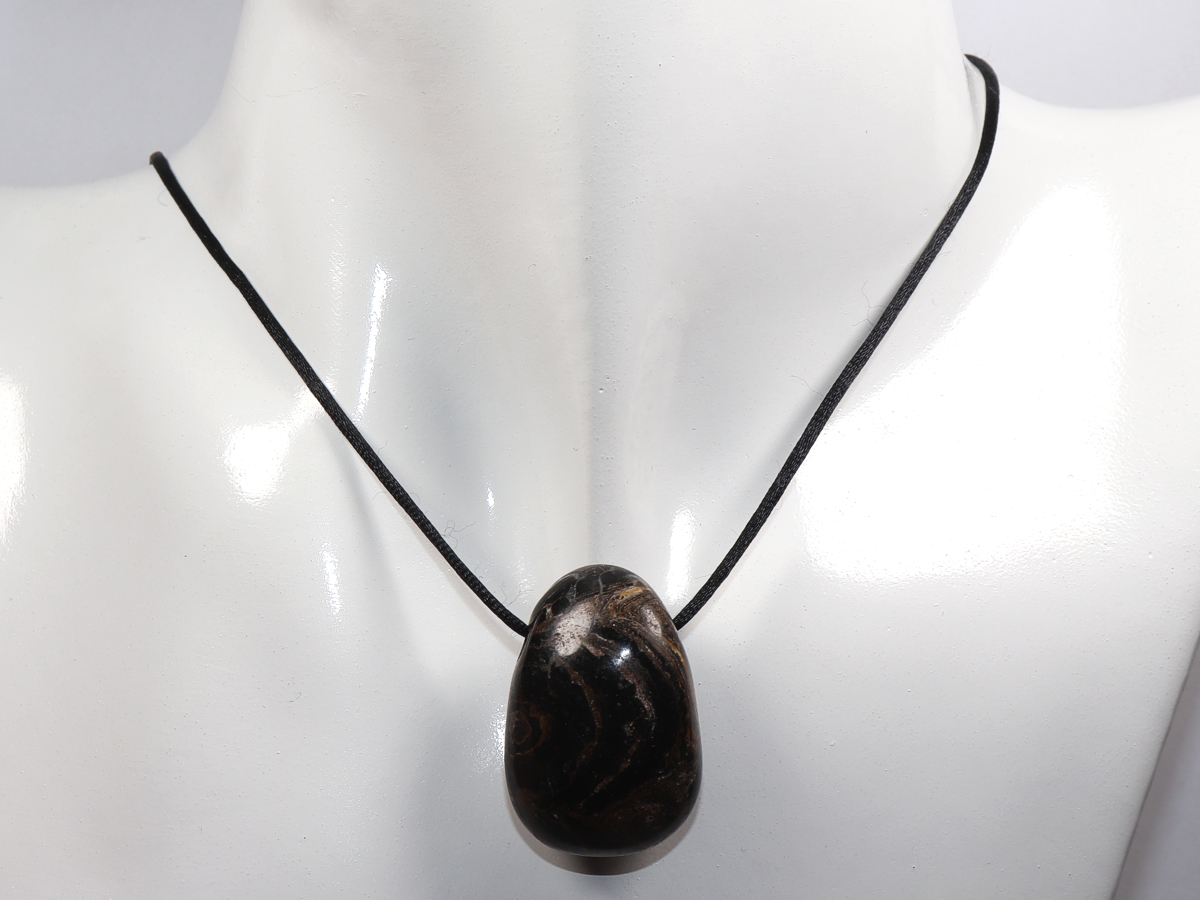 Die Halskette mit Stromatolith wird nach Ihren Angaben individualisiert. Sie haben die Wahl zwischen einem schwarzen Band mit einem Verschluss aus Edelstahl oder einer Kette aus Silber 925.