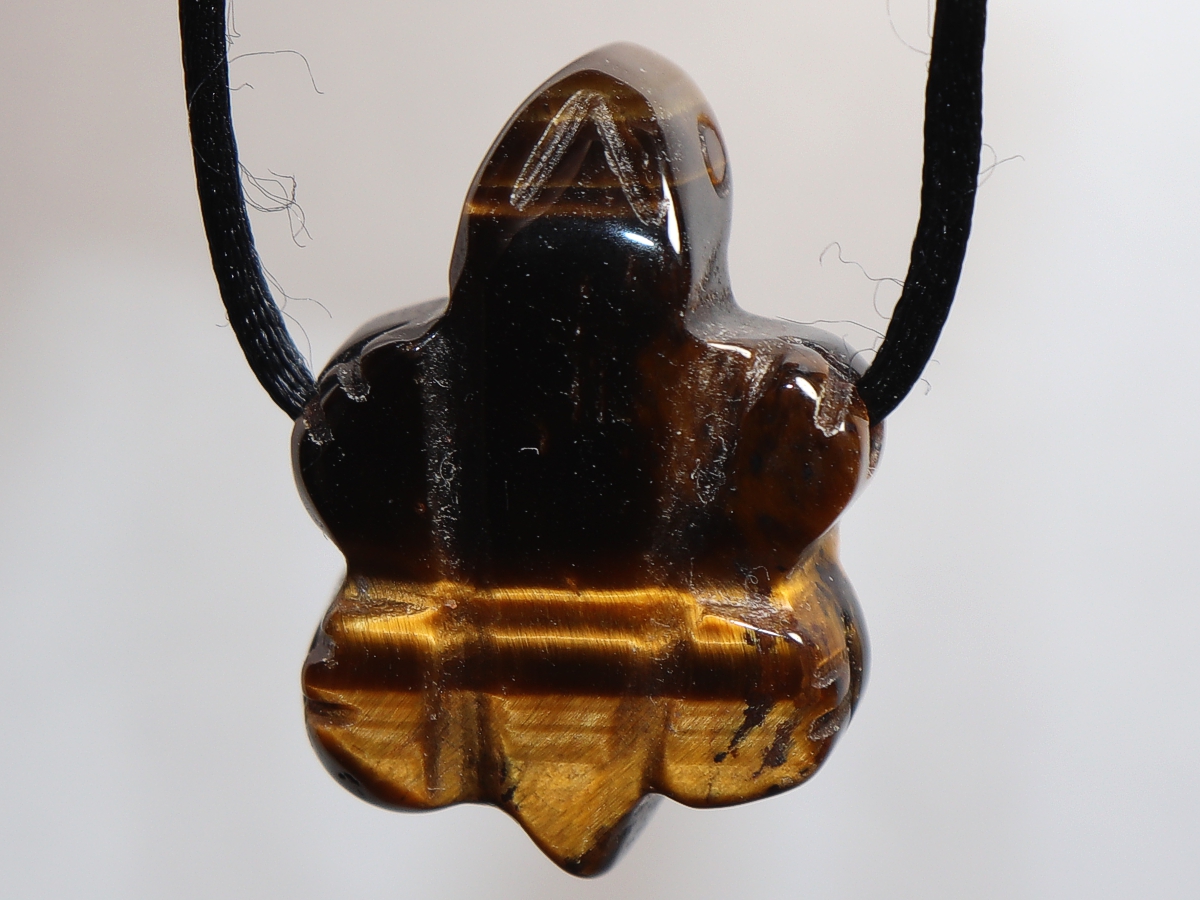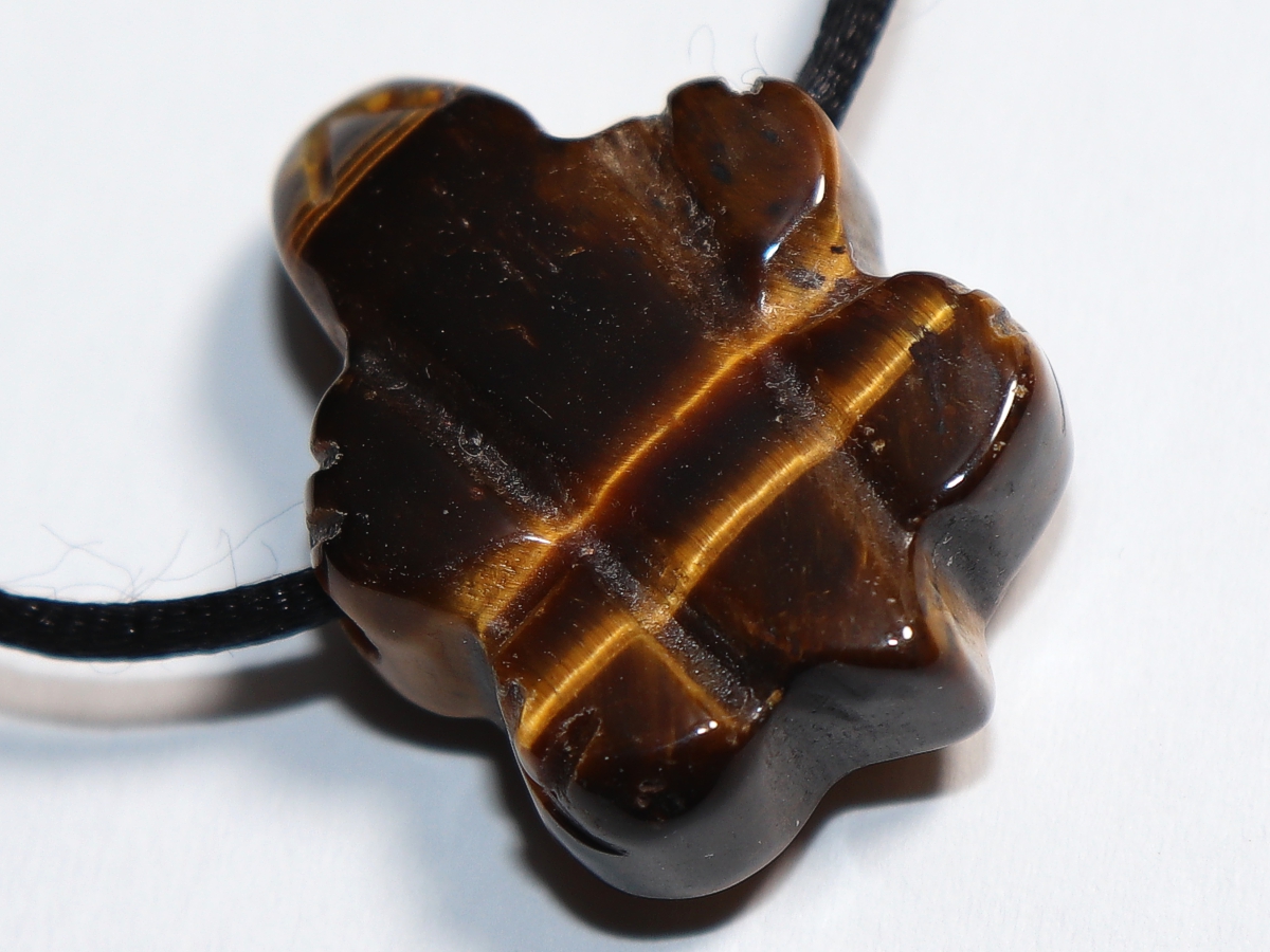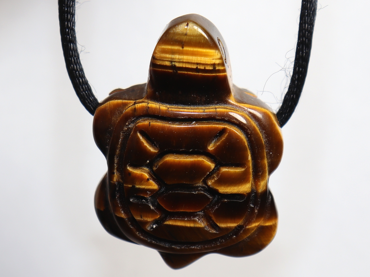 Die Halskette mit der Schildkröte aus Tigerauge wird nach Ihren Angaben individualisiert. Sie haben die Wahl zwischen einem schwarzen Band mit einem Verschluss aus Edelstahl oder einer Kette aus Silber 925.