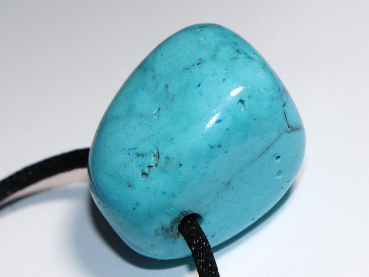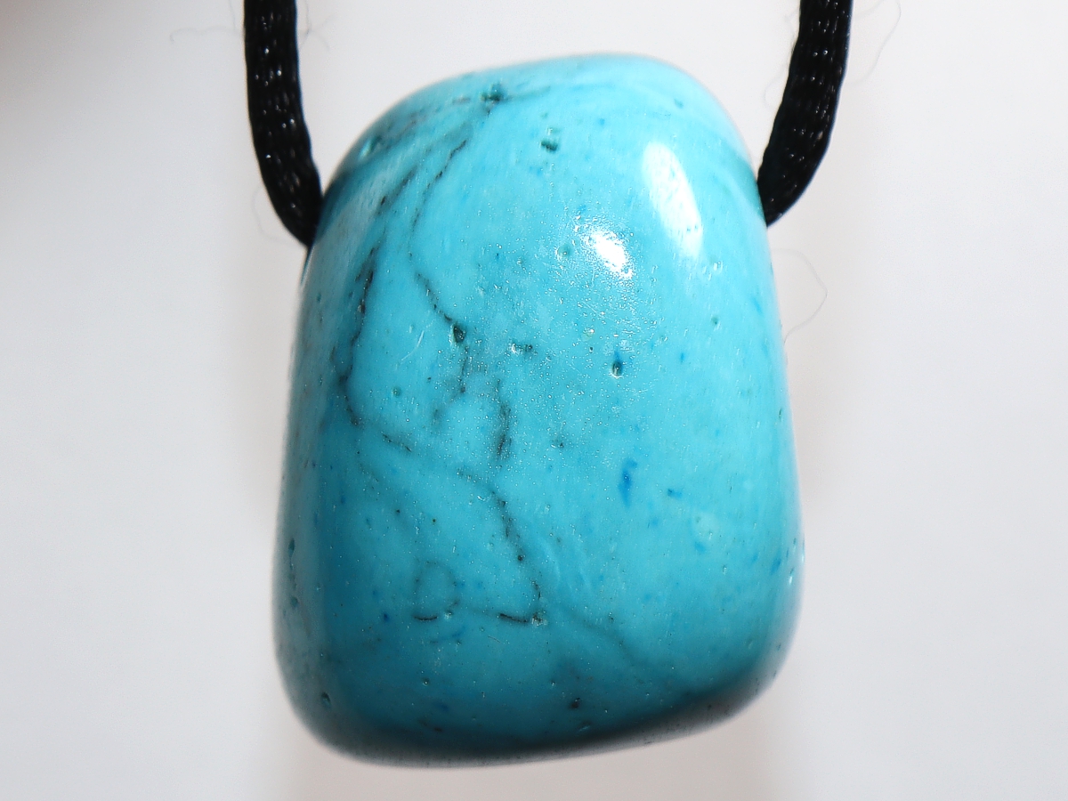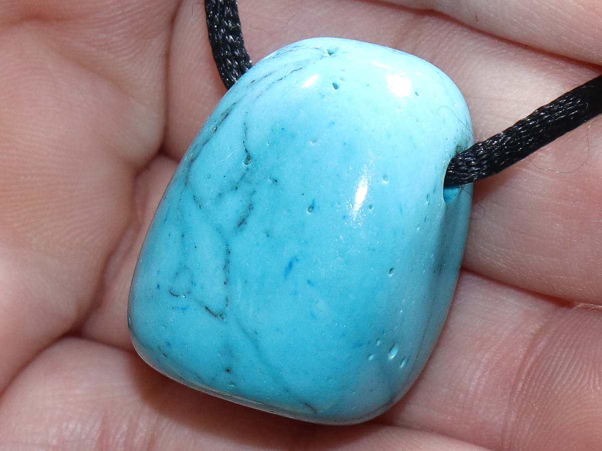 Der Anhänger aus Türkis (rek.) wird mit einem schwarzen Nylonband geliefert.