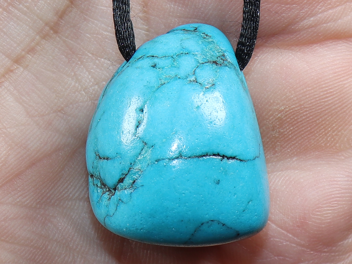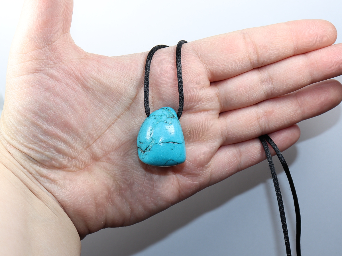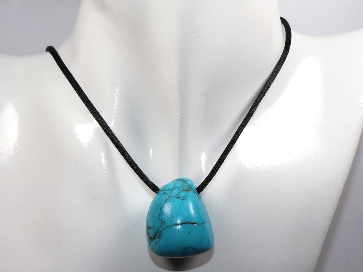 Der Anhänger aus Türkis (rek.) wird mit einem schwarzen Nylonband geliefert.
