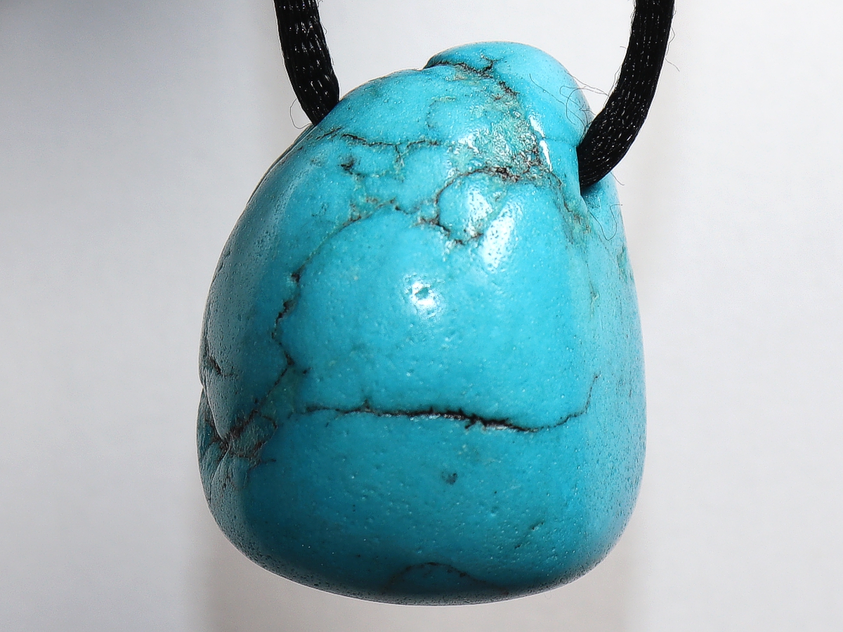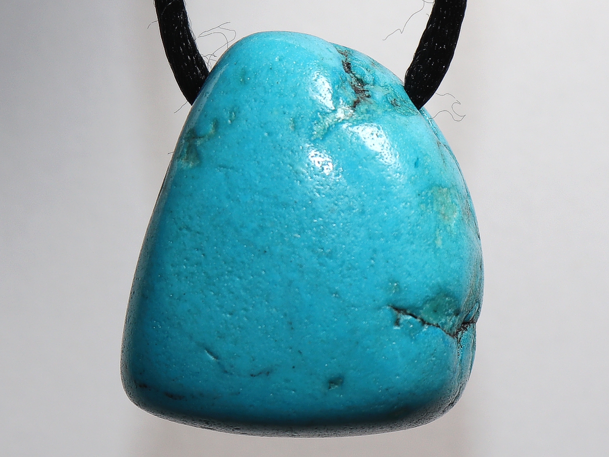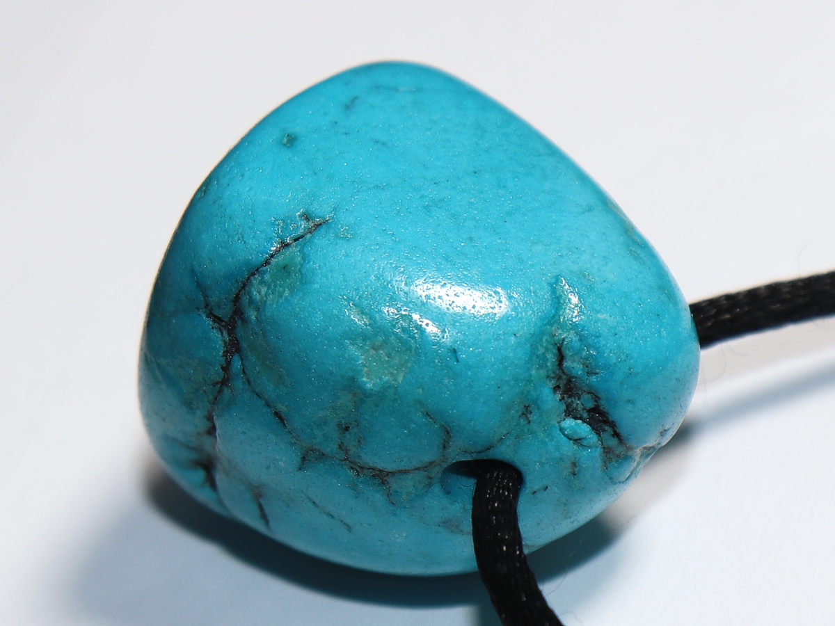 Der Anhänger aus Türkis (rek.) wird mit einem schwarzen Nylonband geliefert.