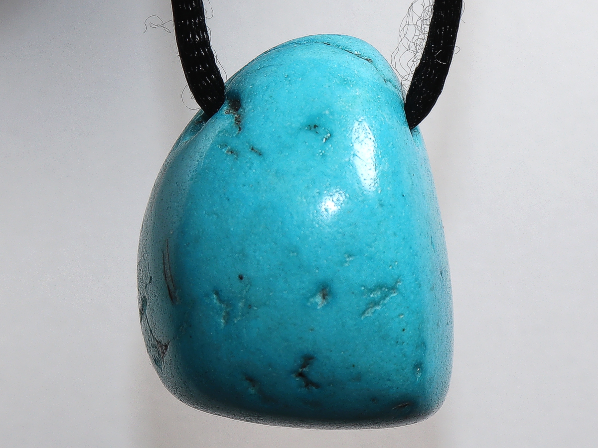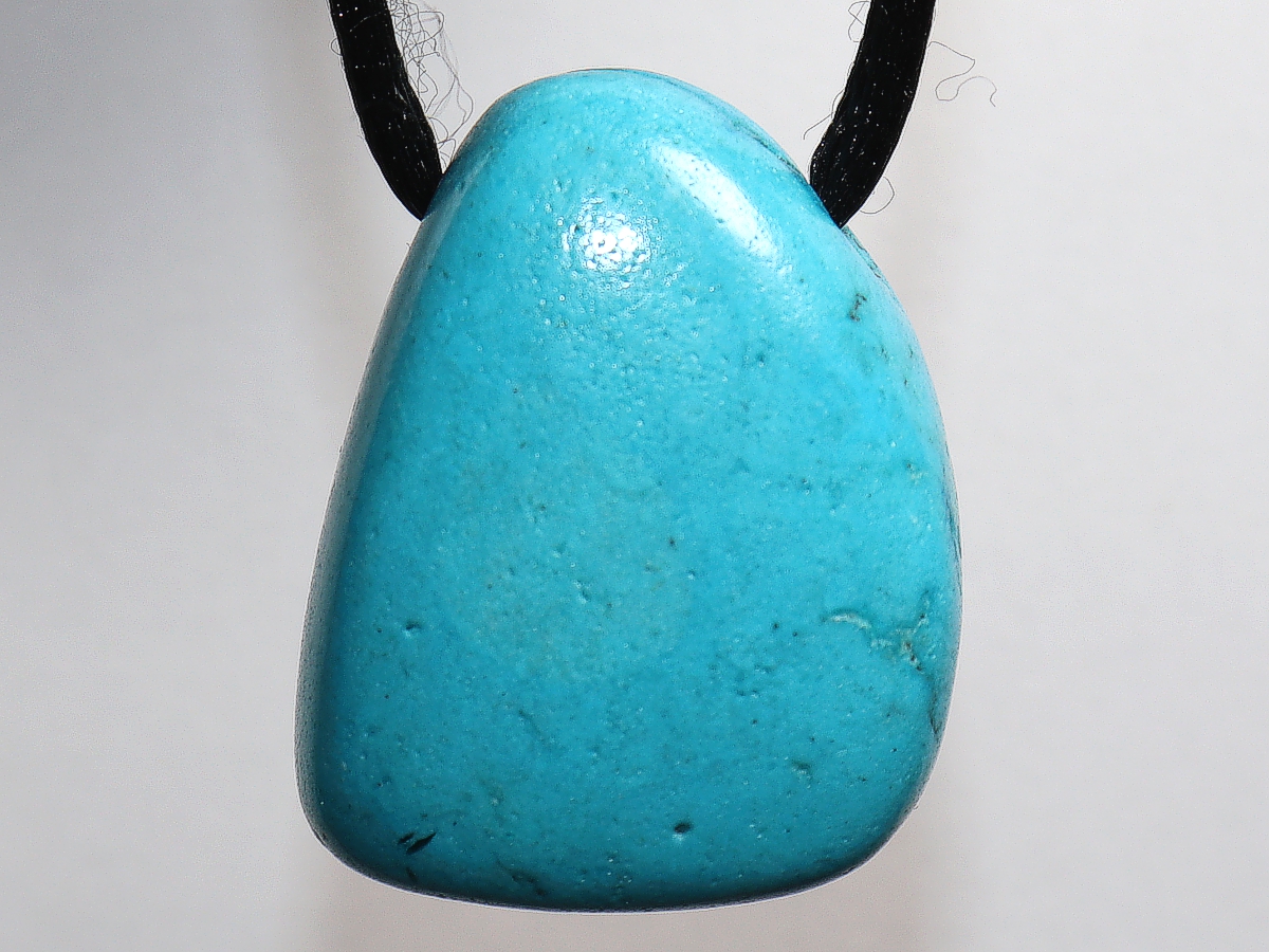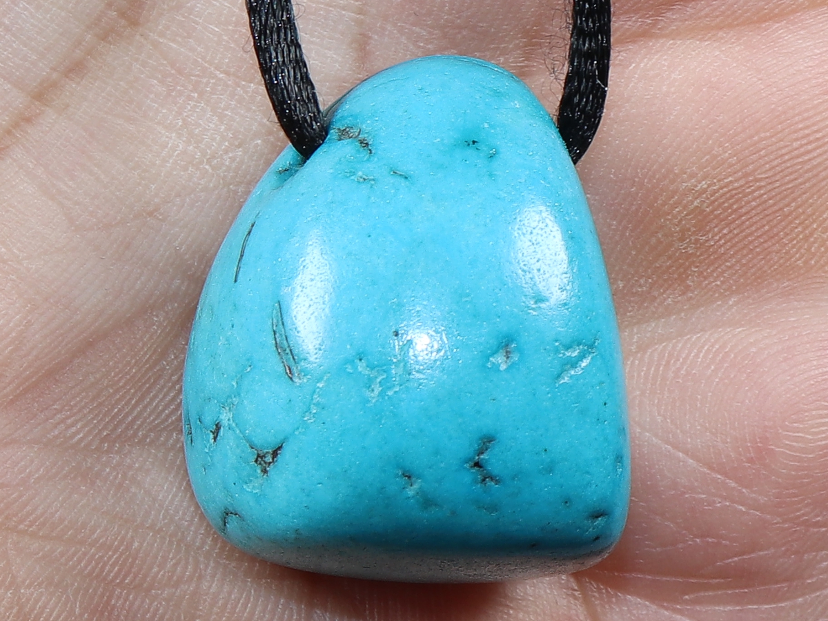 Der Anhänger aus Türkis (rek.) wird mit einem schwarzen Nylonband geliefert.