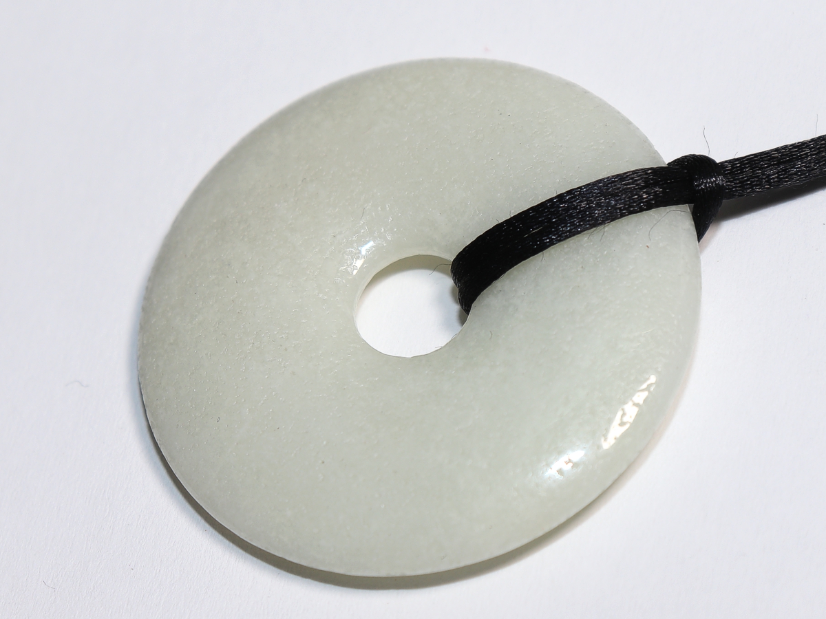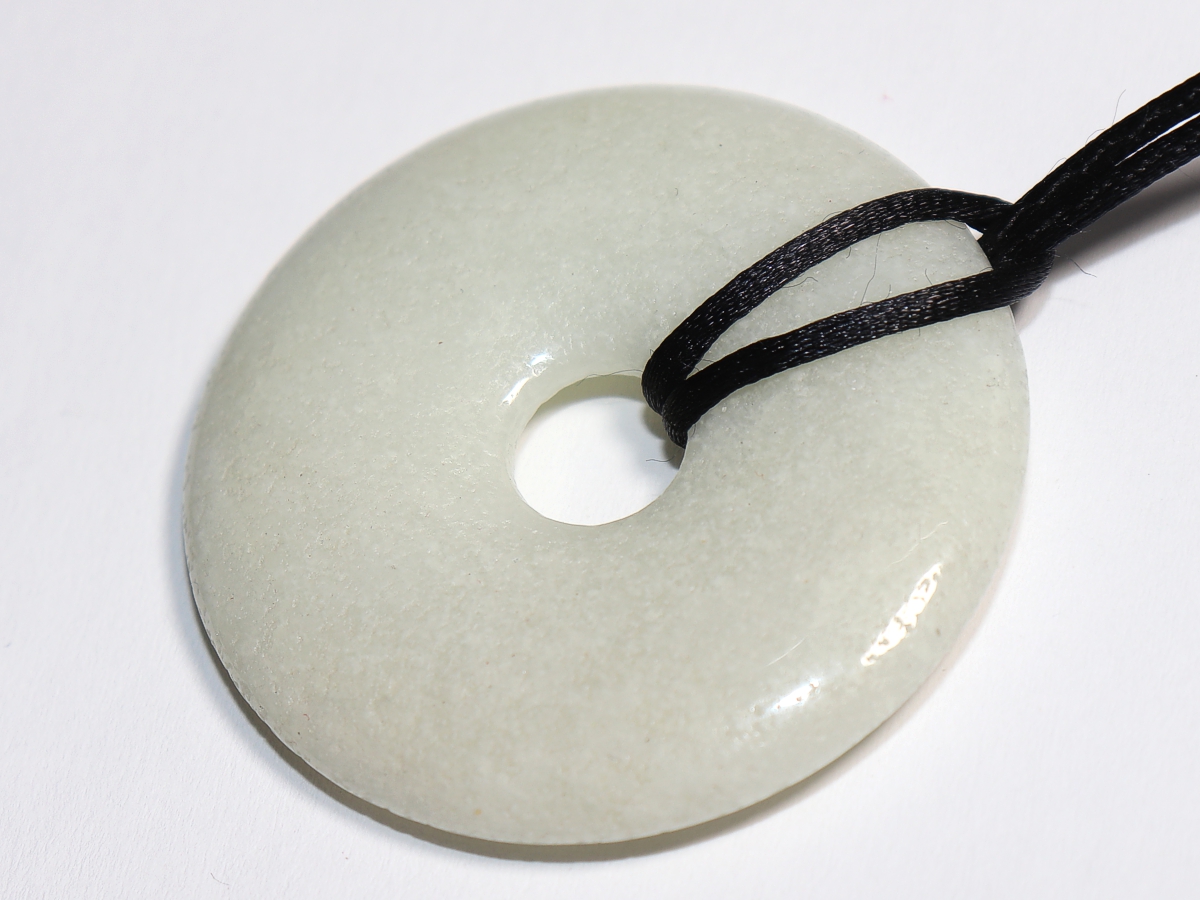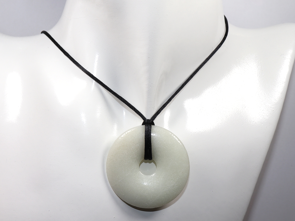 The necklace with the donut made of amazonite and a black cord will be individualized according to your specifications. The closure is made of stainless steel.