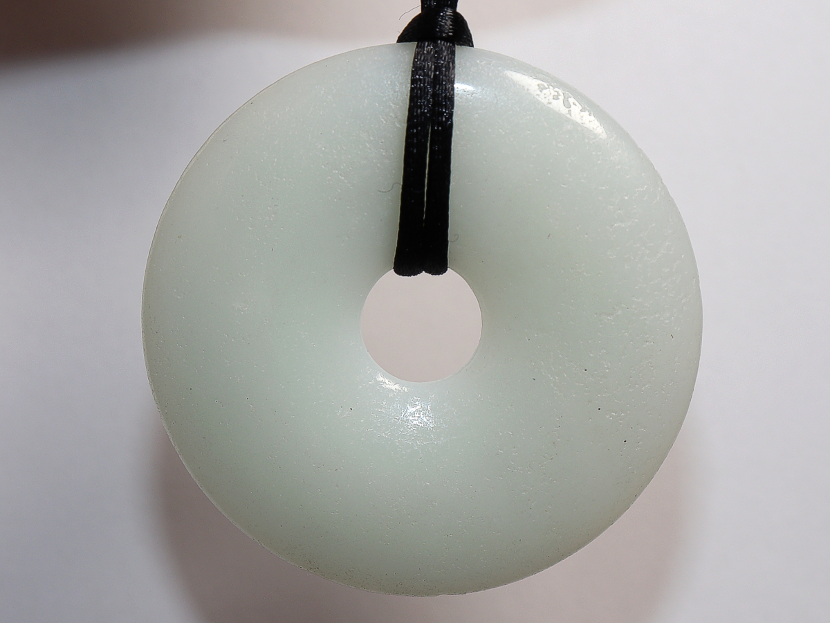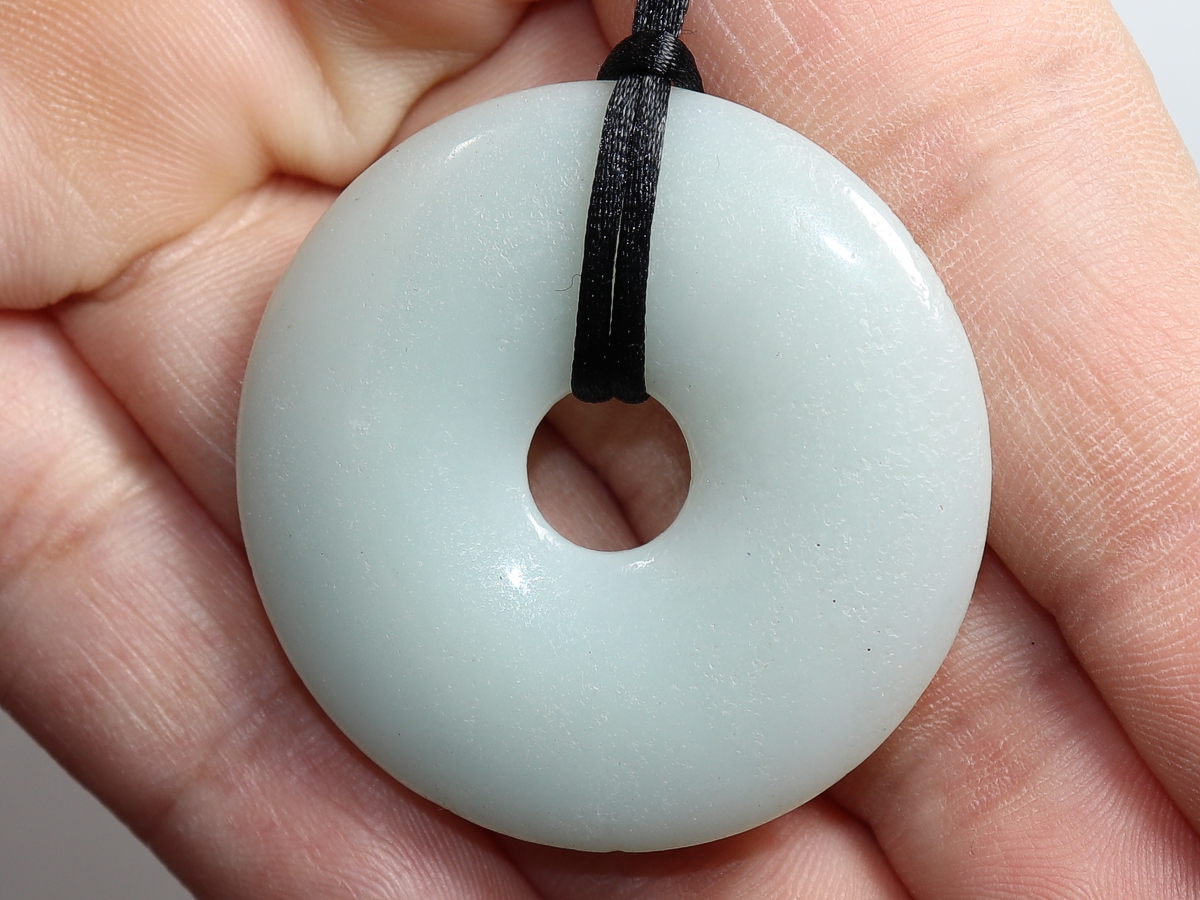 The necklace with the donut made of amazonite and a black cord will be individualized according to your specifications. The closure is made of stainless steel.