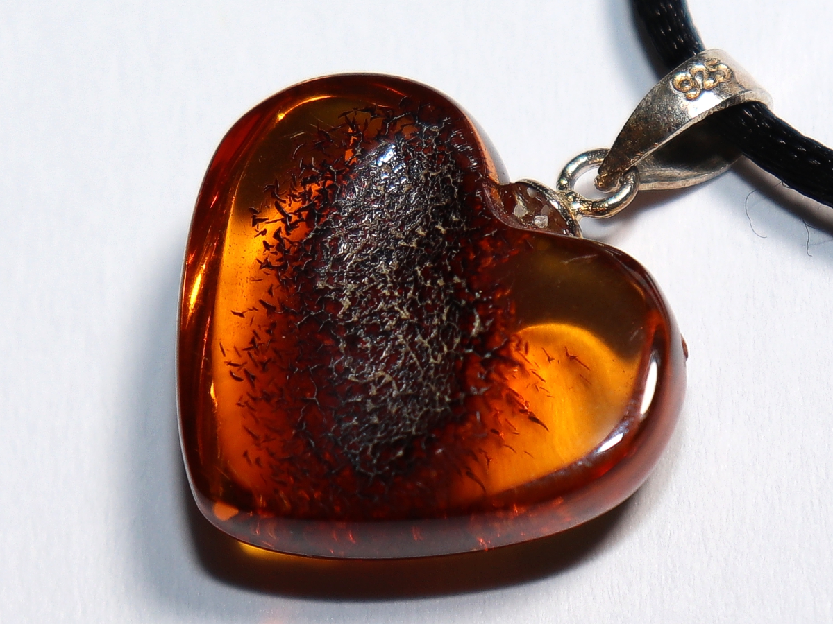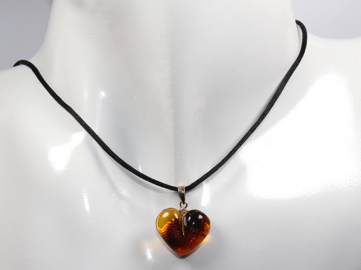 The necklace with the heart made of amber will be individualized according to your specifications. You have the choice between a black cord with a closure made of stainless steel or a chain made of silver 925.