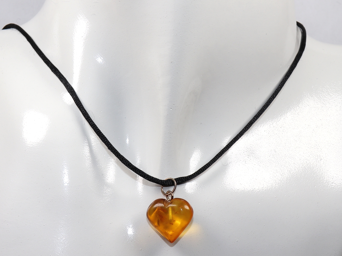 The necklace with the heart made of amber will be individualized according to your specifications. You have the choice between a black cord with a closure made of stainless steel or a chain made of silver 925.