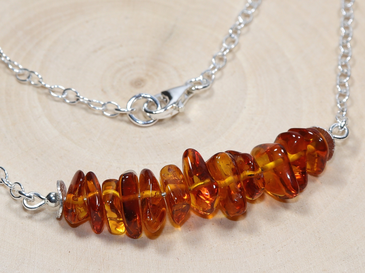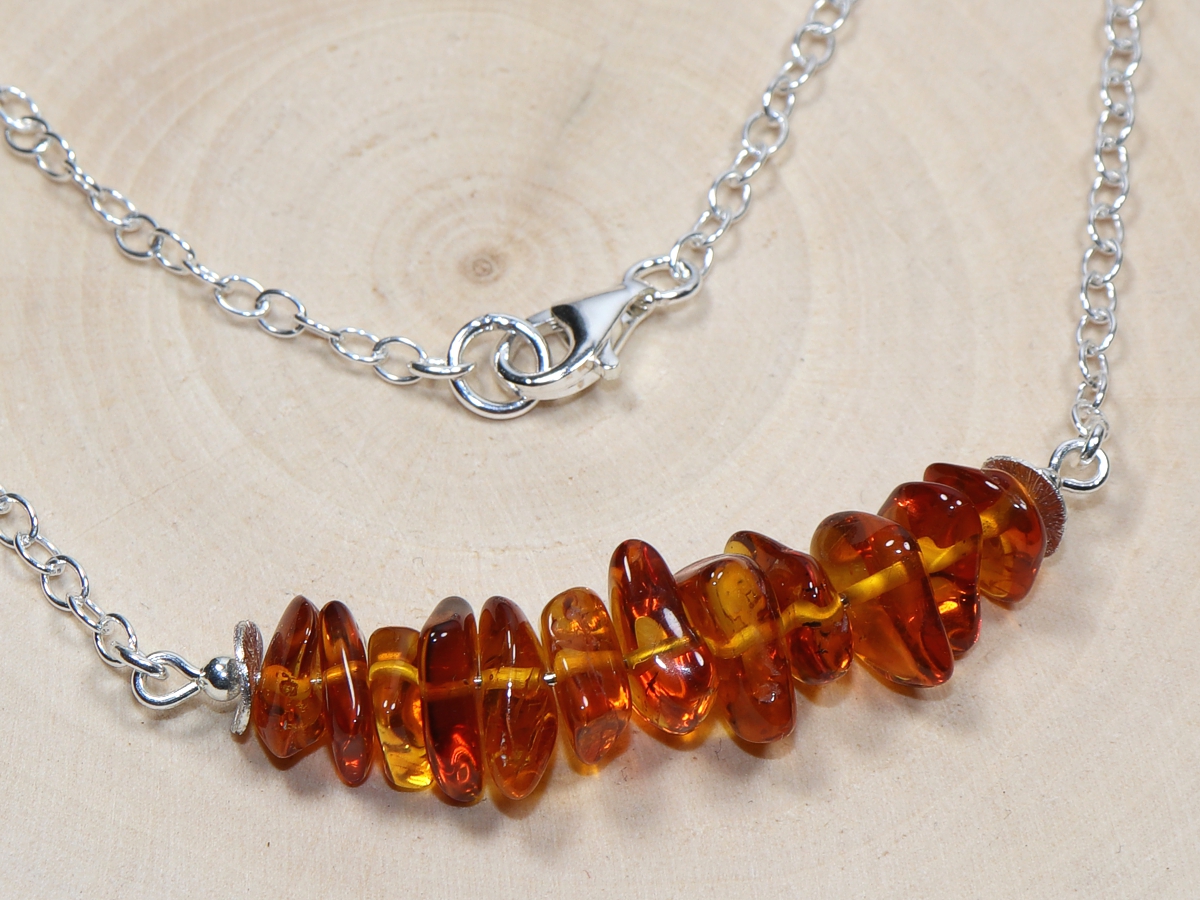 The necklace with amber is accompanied by elements of sterling silver (silver 925).