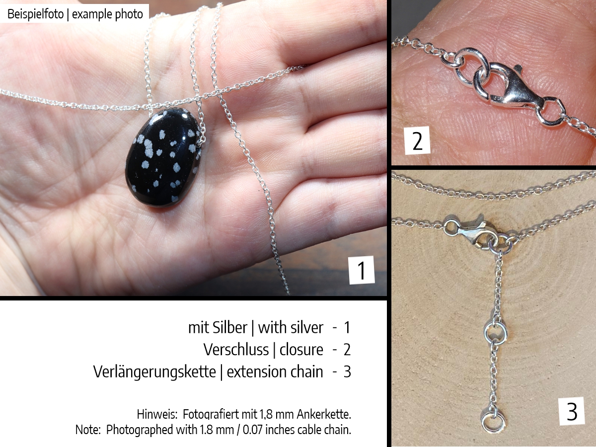 weight: about 6.0 gr / 0.21 oz (at a length of 44 cm / 17.32 inches with 2.7 mm / 0.11 inches chain)