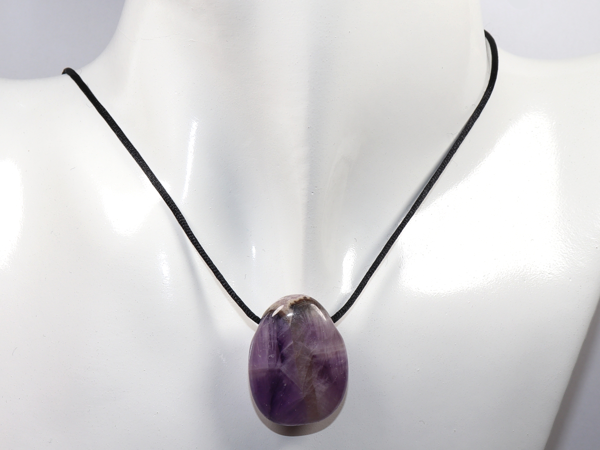 The necklace with amethyst will be individualized according to your specifications. You have the choice between a black cord with a closure made of stainless steel or a chain made of silver 925.