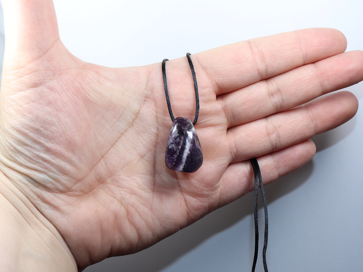 The necklace with amethyst will be individualized according to your specifications. You have the choice between a black cord with a closure made of stainless steel or a chain made of silver 925.