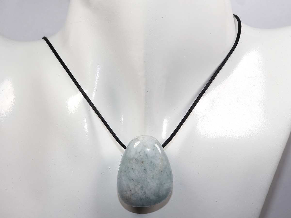 The necklace with aquamarine will be individualized according to your specifications. You have the choice between a black cord with a closure made of stainless steel or a chain made of silver 925.