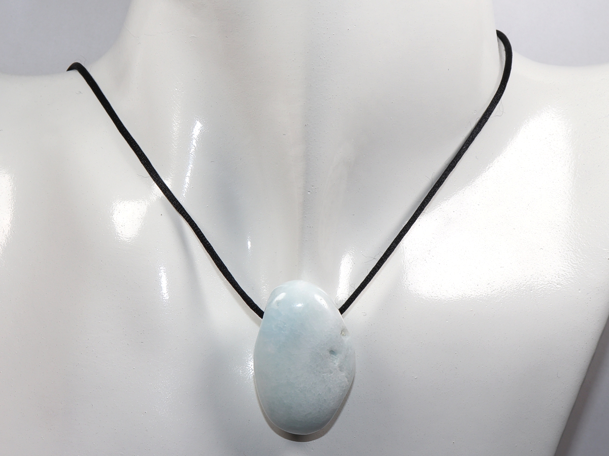 The necklace with blue calcite will be individualized according to your specifications. You have the choice between a black cord with a closure made of stainless steel or a chain made of silver 925.