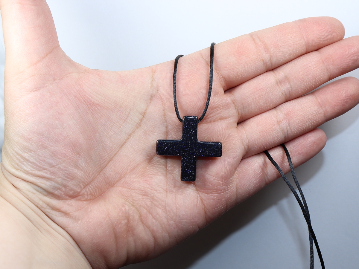 The necklace with the cross made of blue sandstone will be individualized according to your specifications. You have the choice between a black cord with a closure made of stainless steel or a chain made of silver 925.