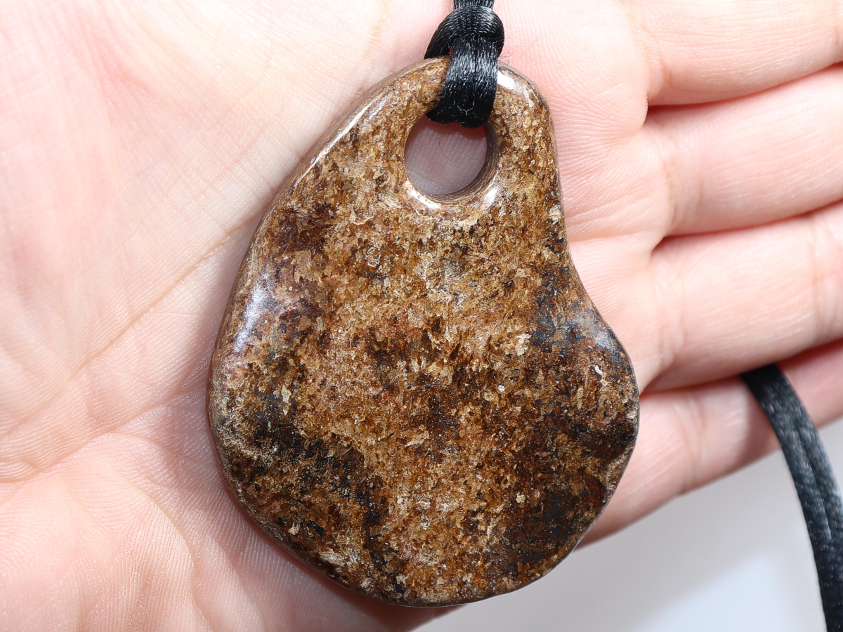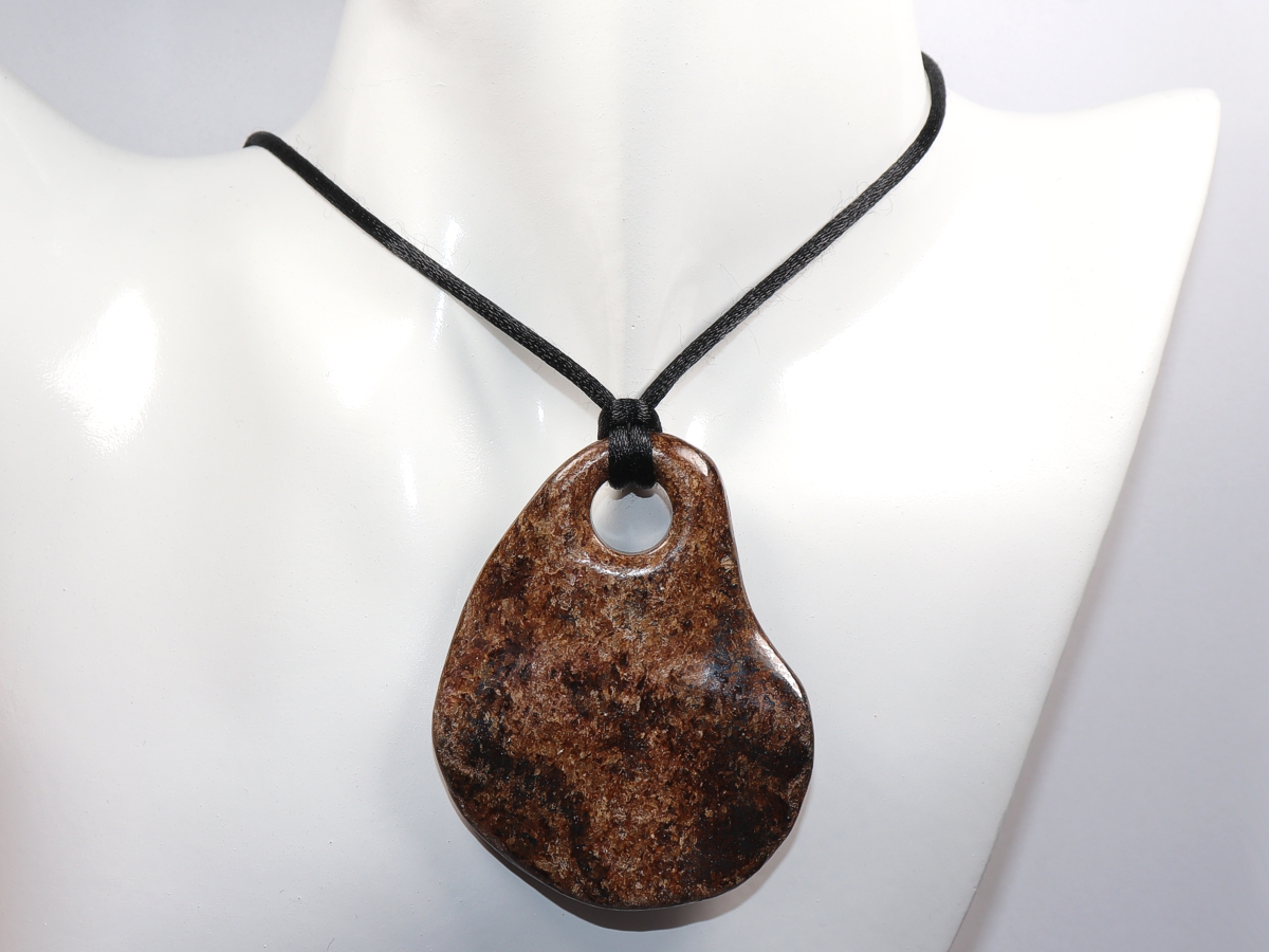The pendant made of bronzite will be delivered with a black nylon cord.