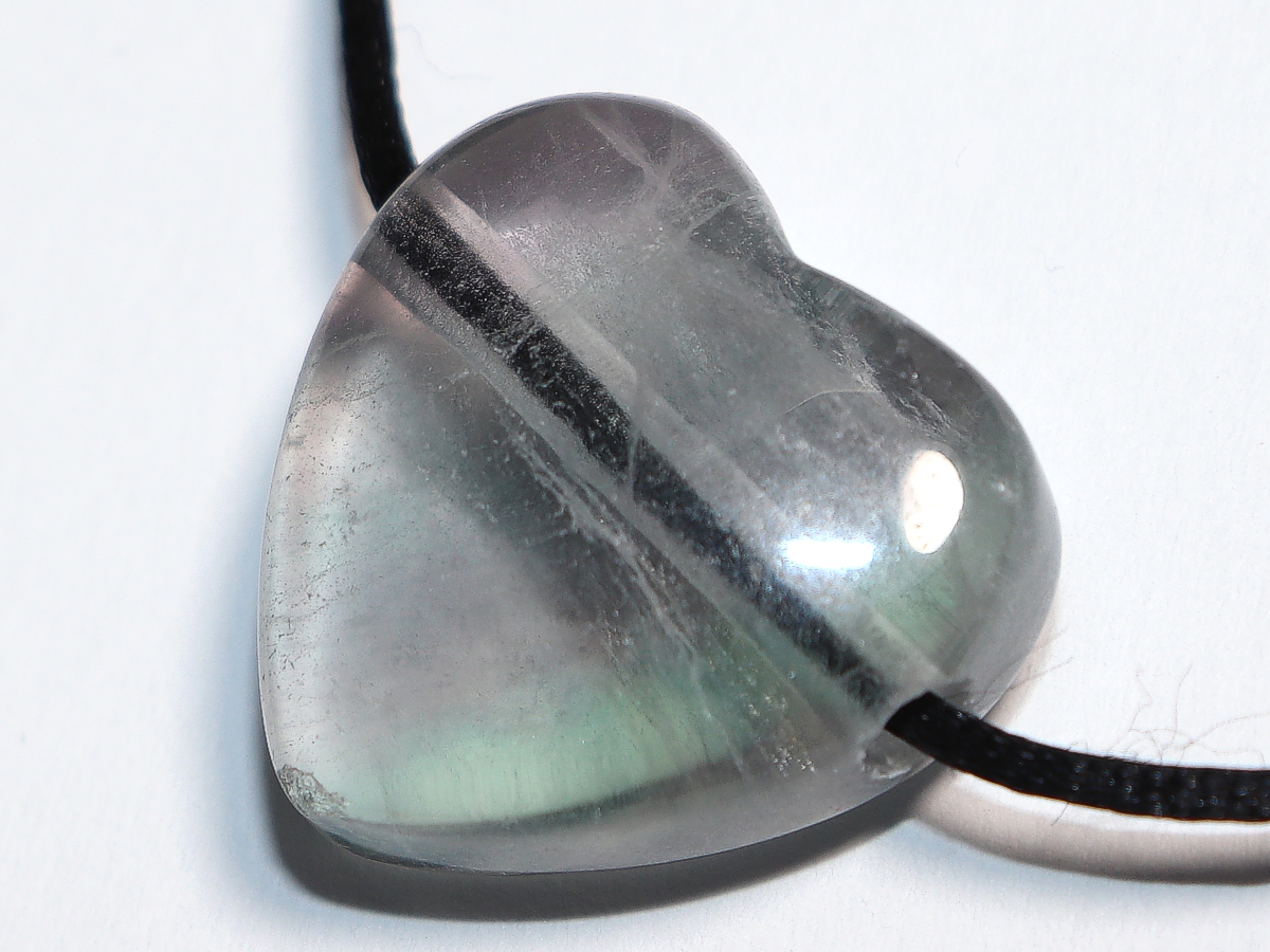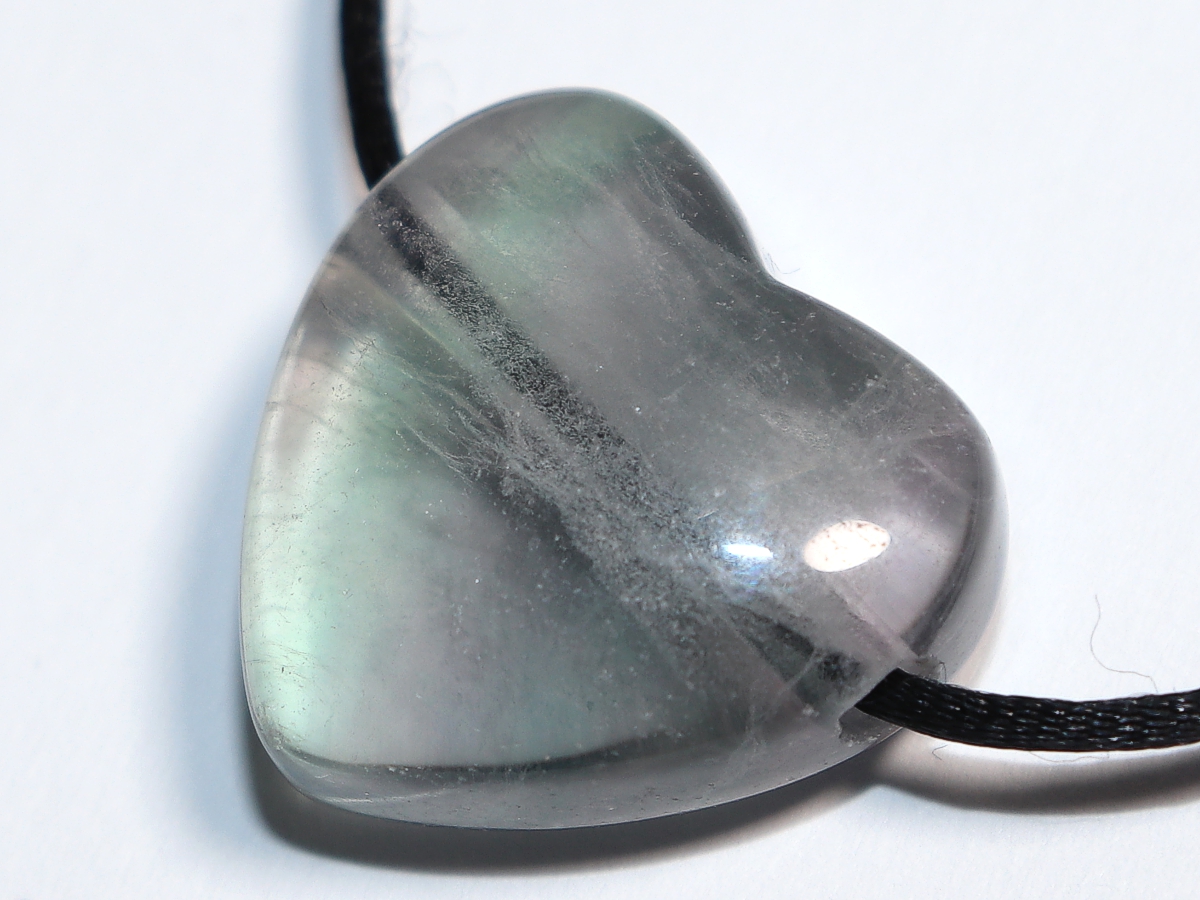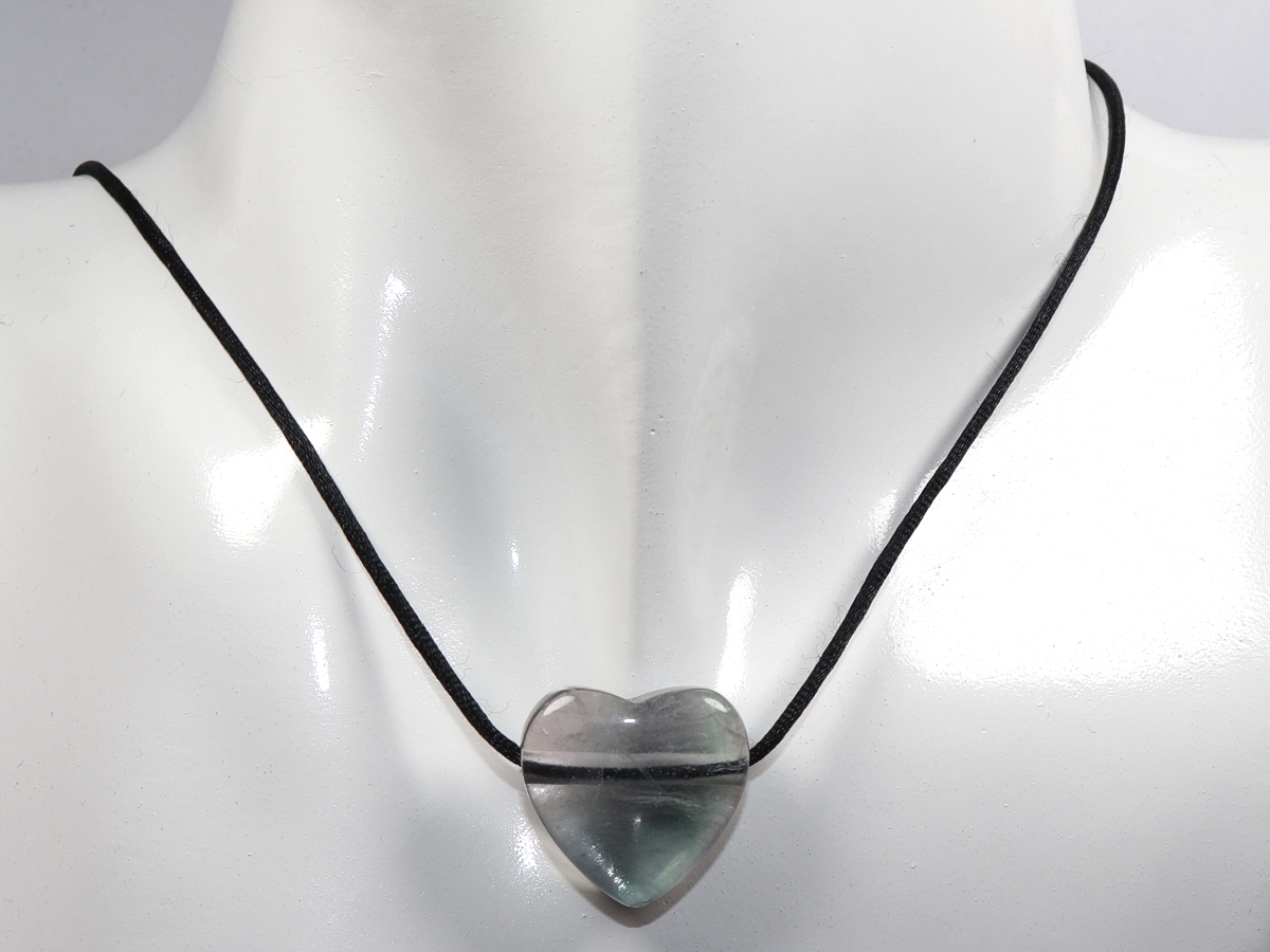 The necklace with the heart made of fluorite will be individualized according to your specifications. You have the choice between a black cord with a closure made of stainless steel or a chain made of silver 925.