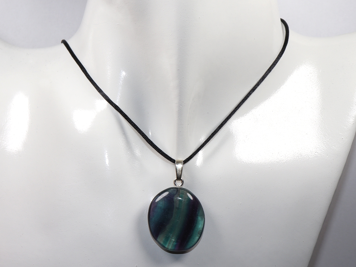The necklace with fluorite will be individualized according to your specifications. You have the choice between a black cord with a closure made of stainless steel or a chain made of silver 925.