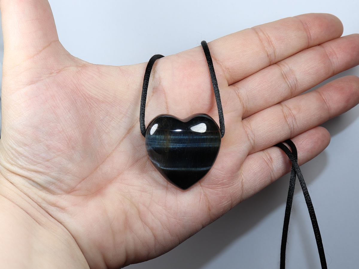 The necklace with the heart made of hawks eye will be individualized according to your specifications. You have the choice between a black cord with a closure made of stainless steel or a chain made of silver 925.