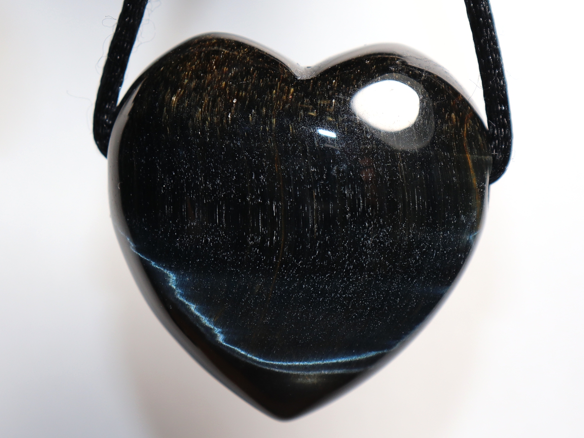 The necklace with the heart made of hawks eye will be individualized according to your specifications. You have the choice between a black cord with a closure made of stainless steel or a chain made of silver 925.