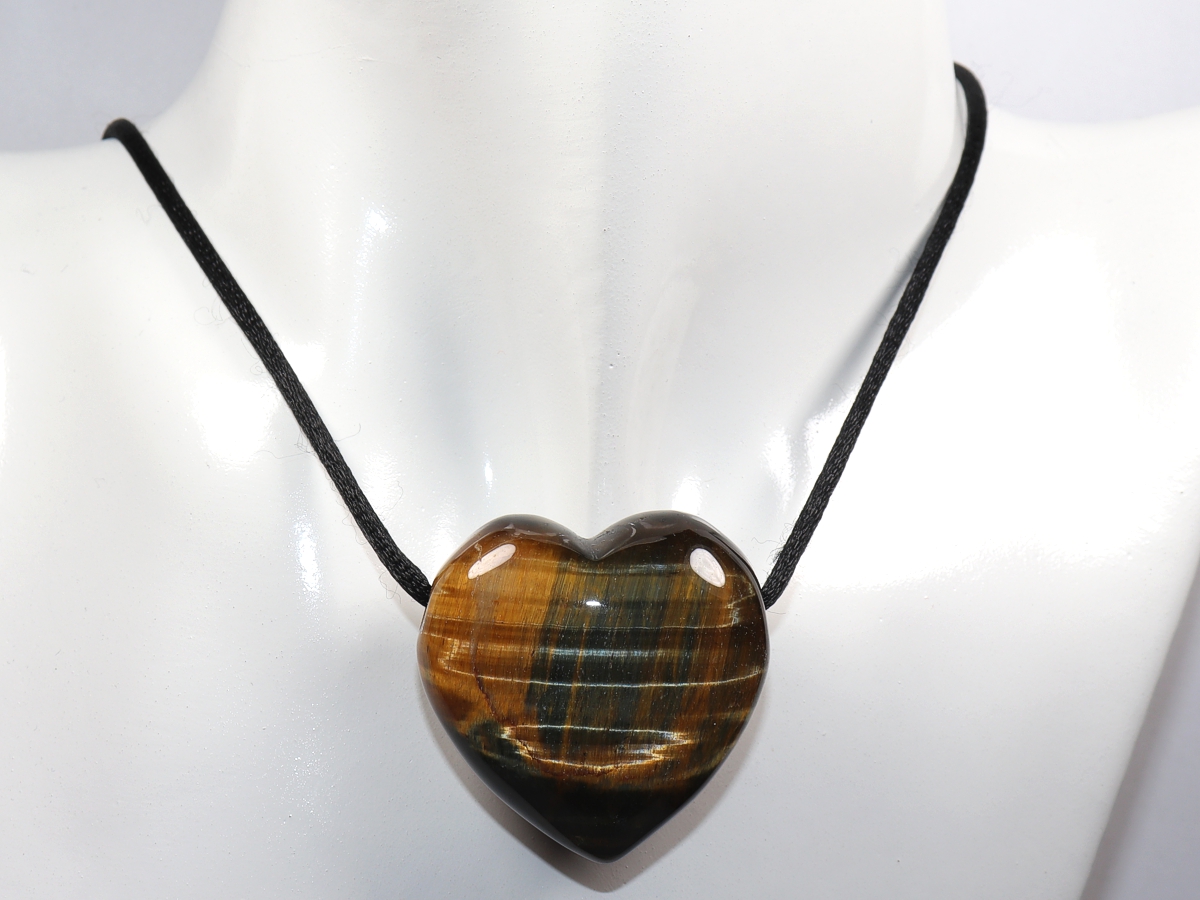 The necklace with the heart made of hawks eye with tiger's eye will be individualized according to your specifications. You have the choice between a black cord with a closure made of stainless steel or a chain made of silver 925.