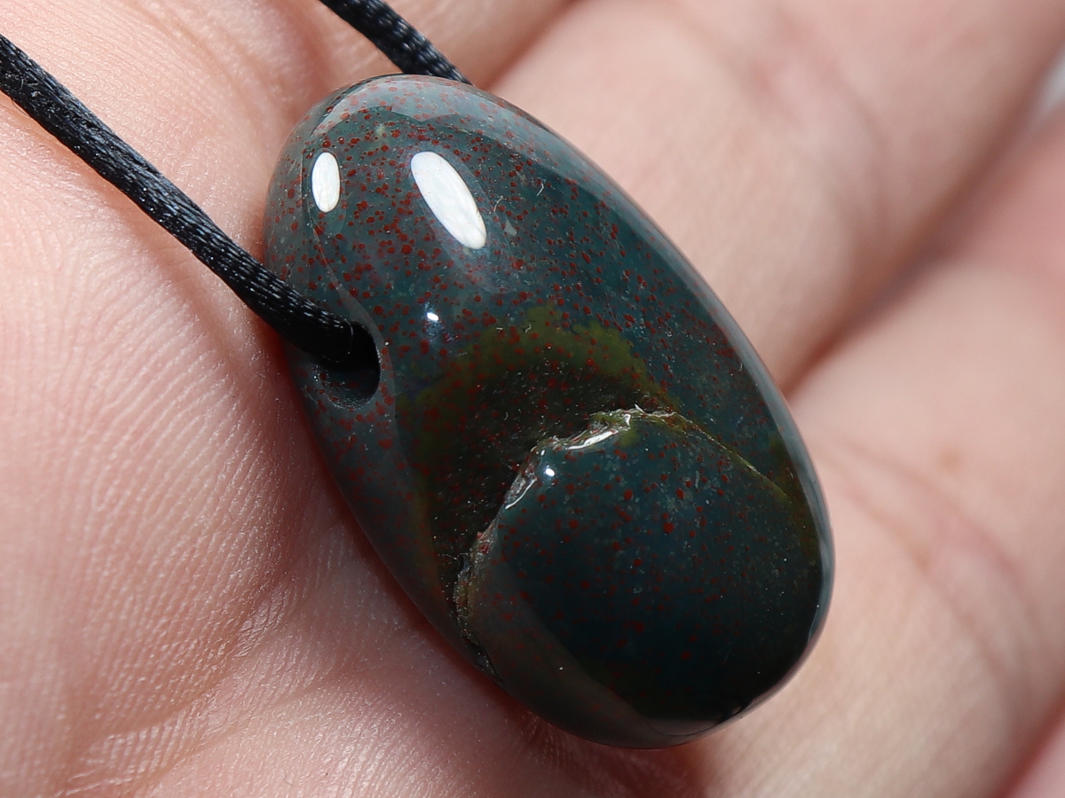 The necklace with heliotrope will be individualized according to your specifications. You have the choice between a black cord with a closure made of stainless steel or a chain made of silver 925.