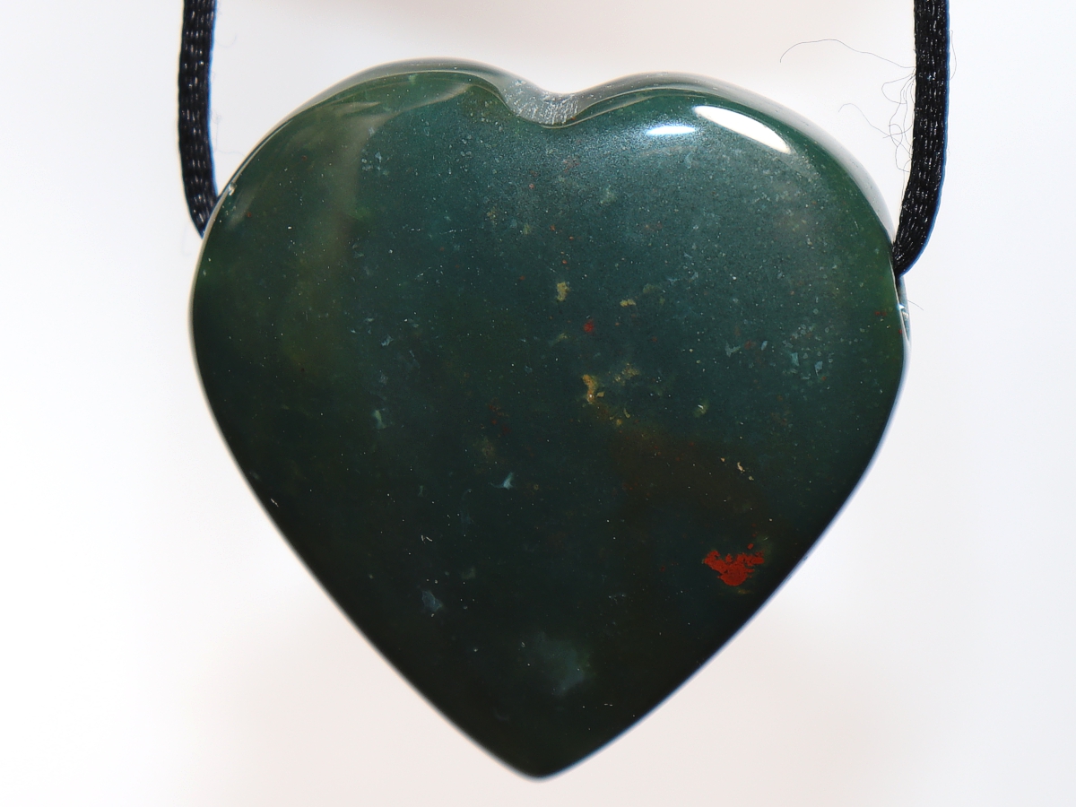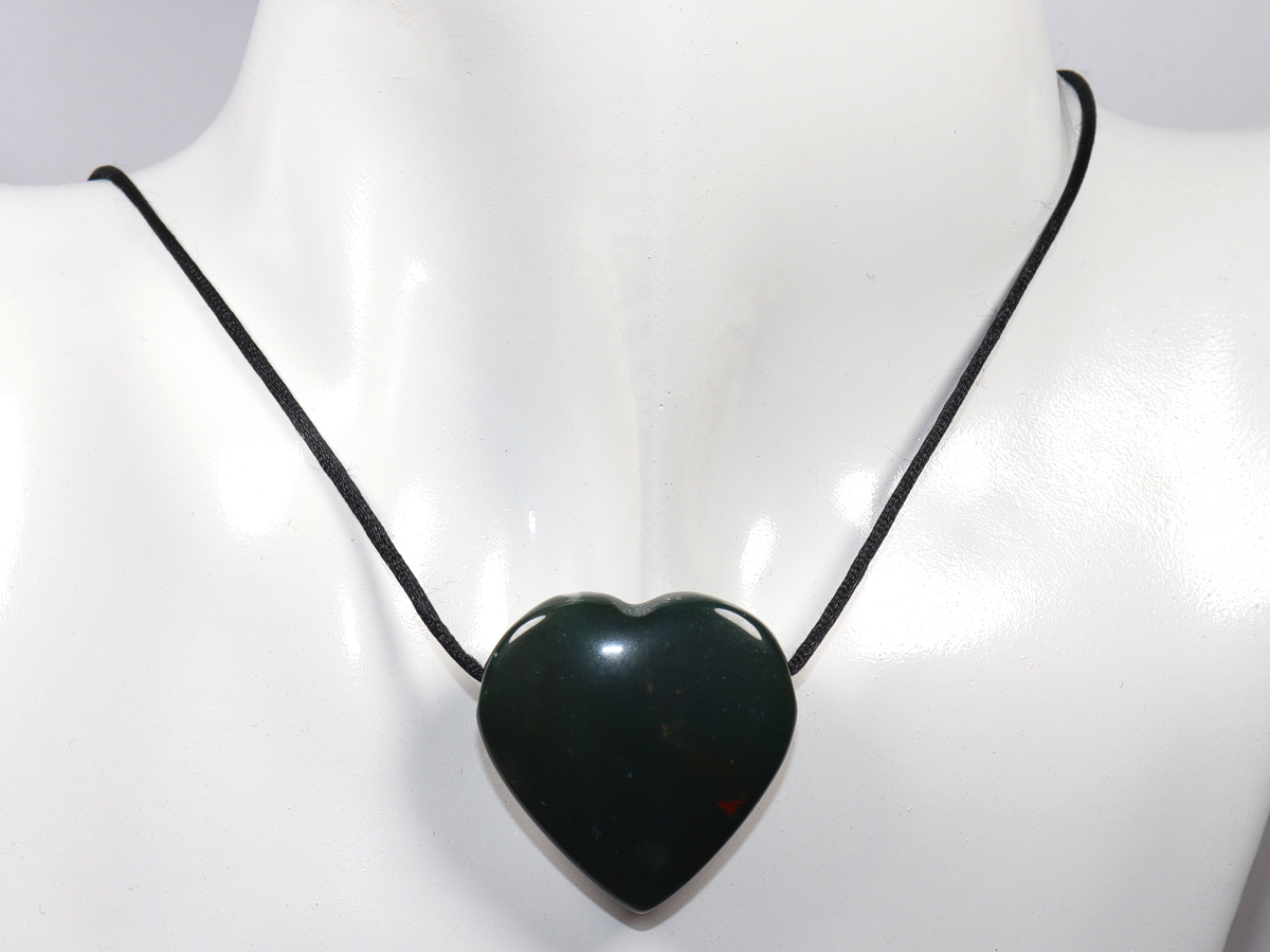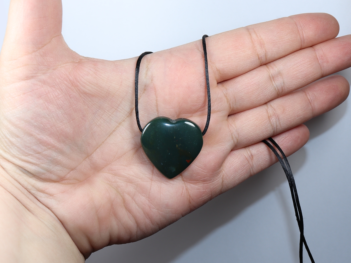 The necklace with the heart made of heliotrope will be individualized according to your specifications. You have the choice between a black cord with a closure made of stainless steel or a chain made of silver 925.