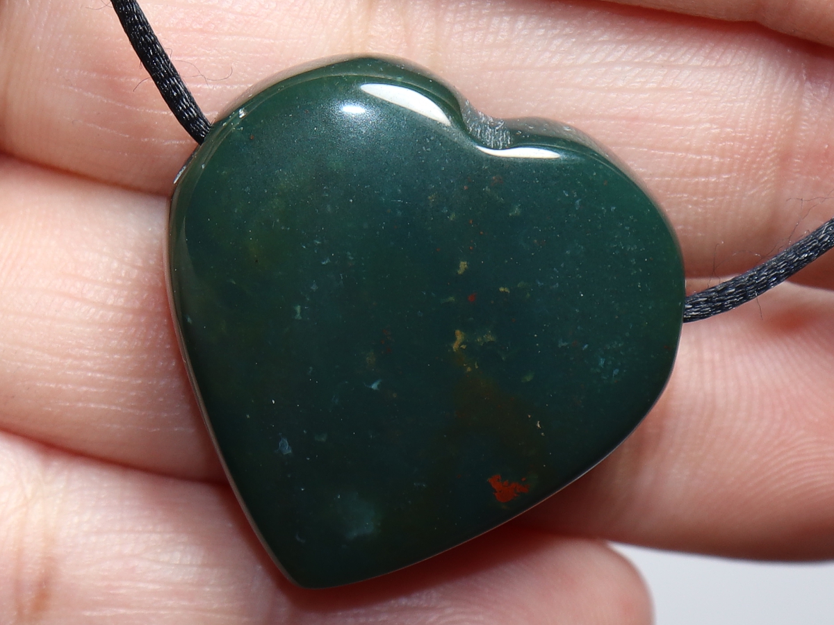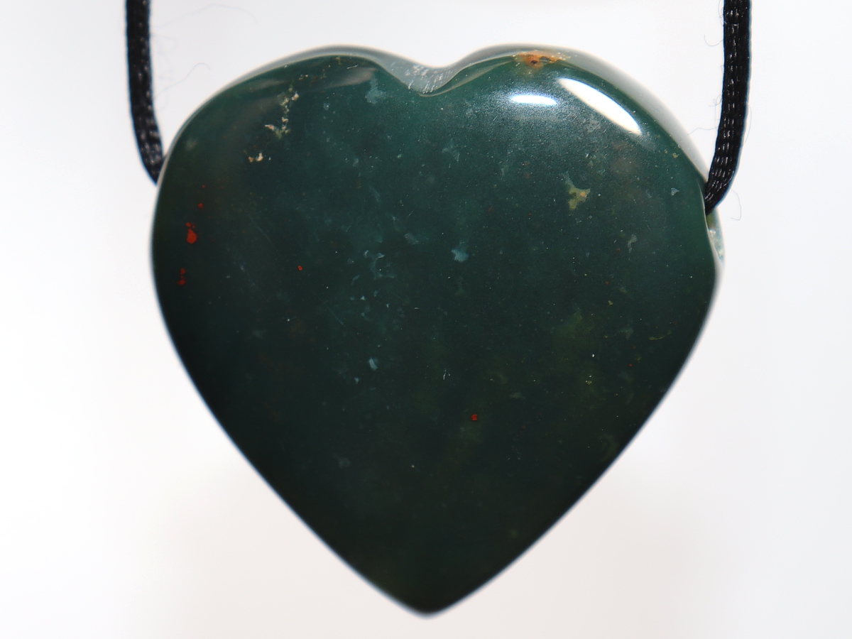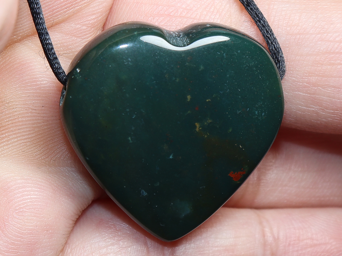 The necklace with the heart made of heliotrope will be individualized according to your specifications. You have the choice between a black cord with a closure made of stainless steel or a chain made of silver 925.