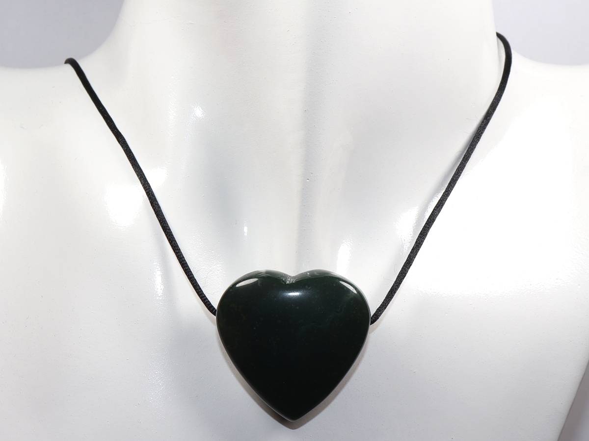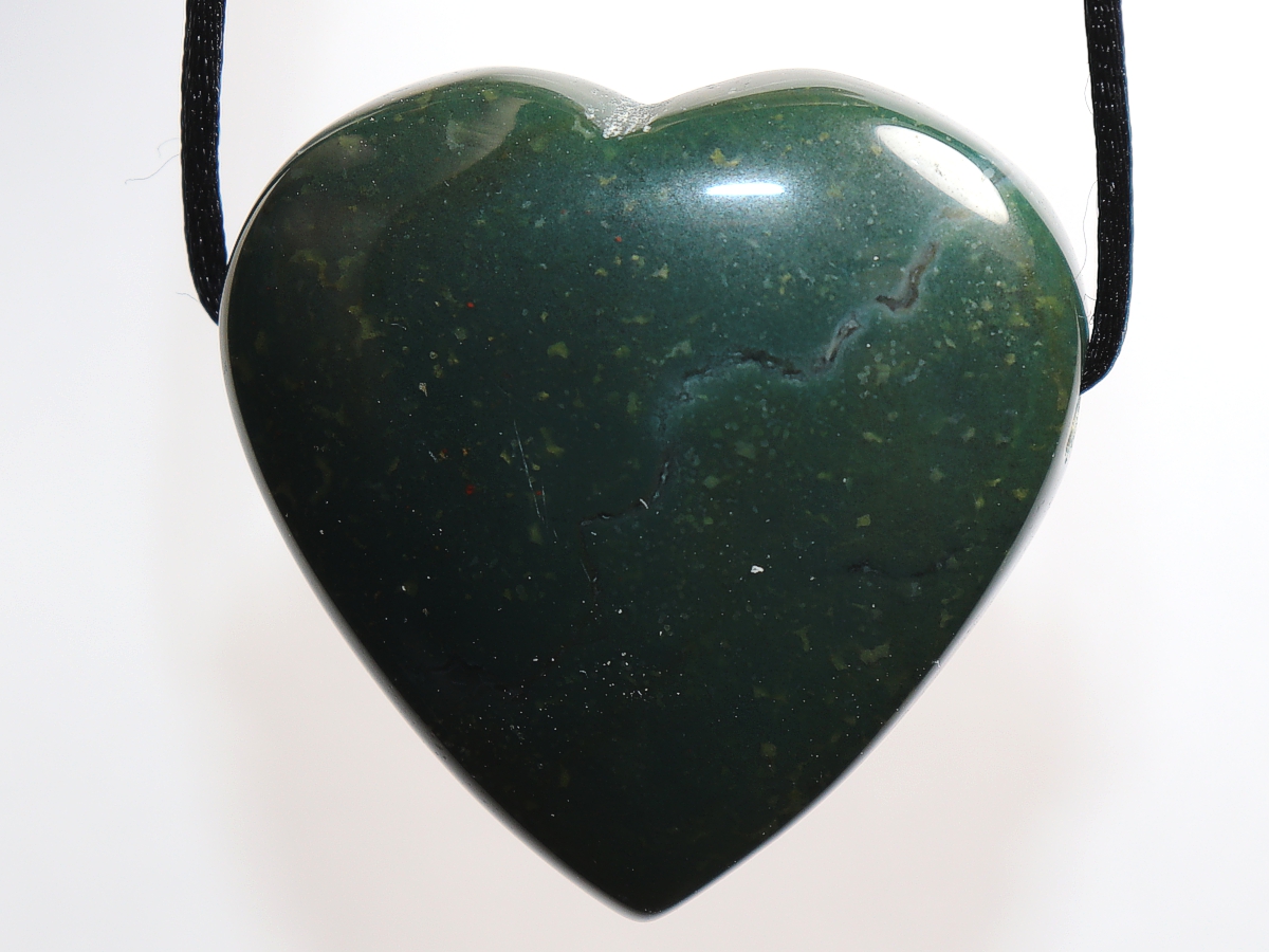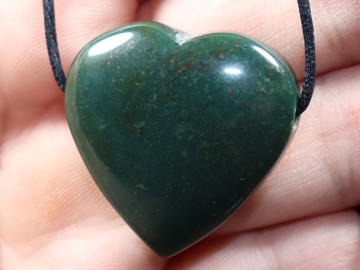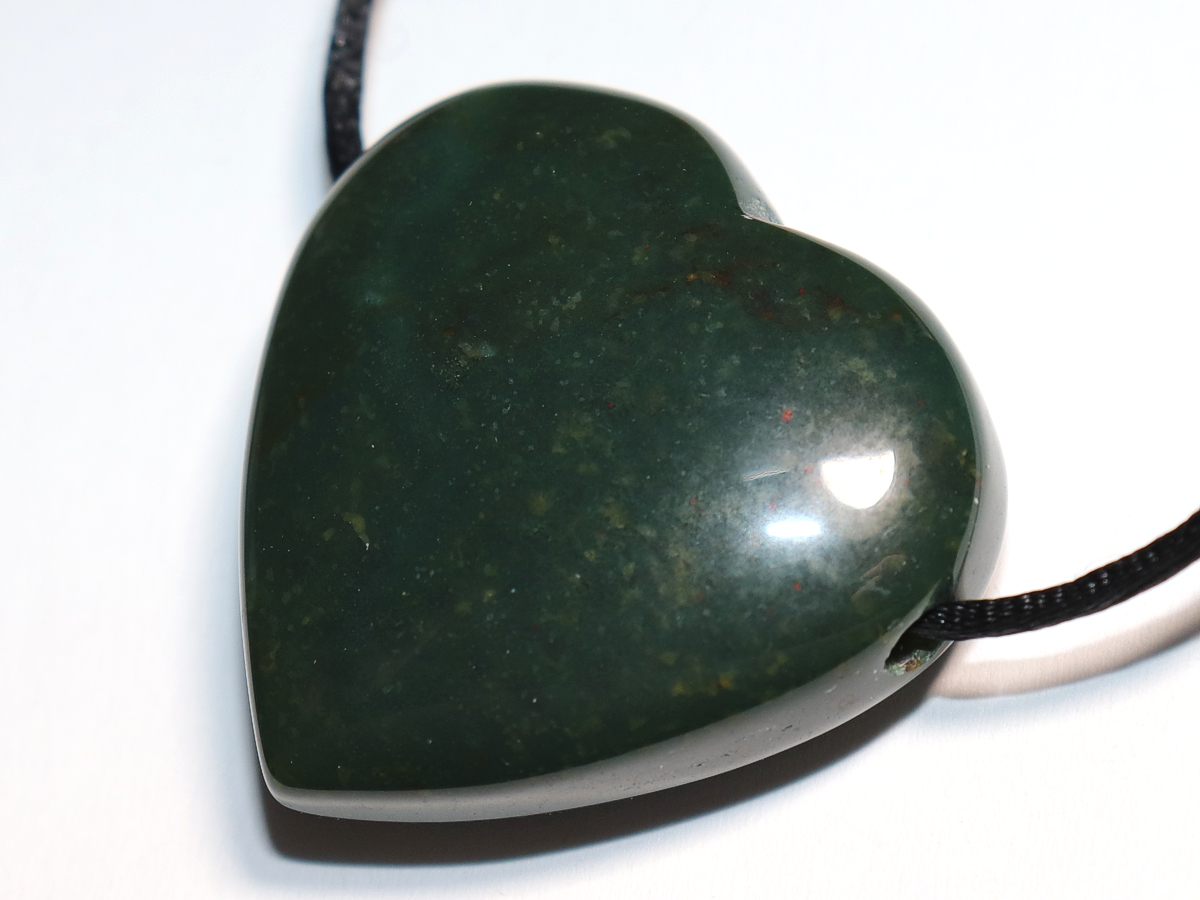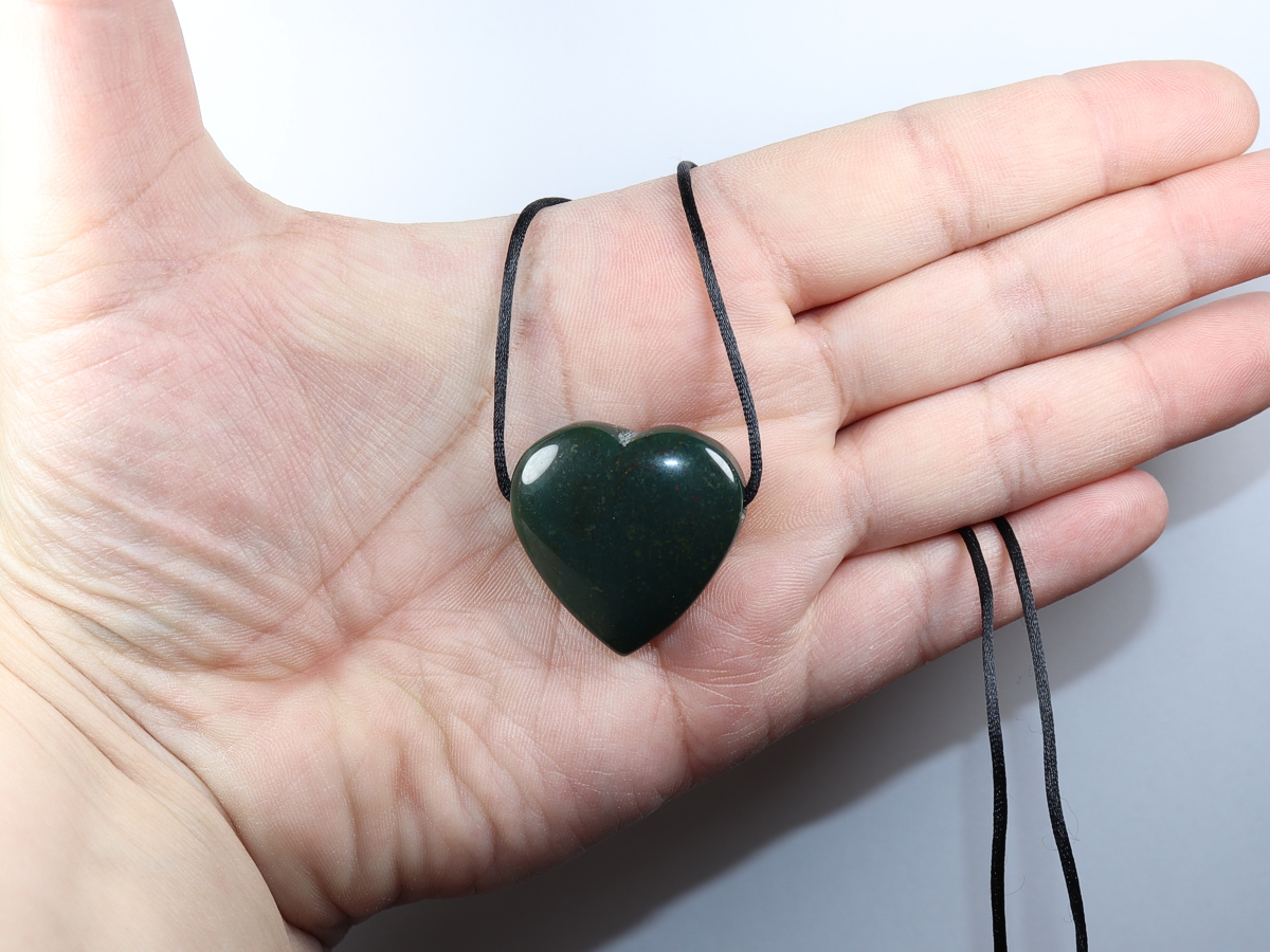 The necklace with the heart made of heliotrope will be individualized according to your specifications. You have the choice between a black cord with a closure made of stainless steel or a chain made of silver 925.