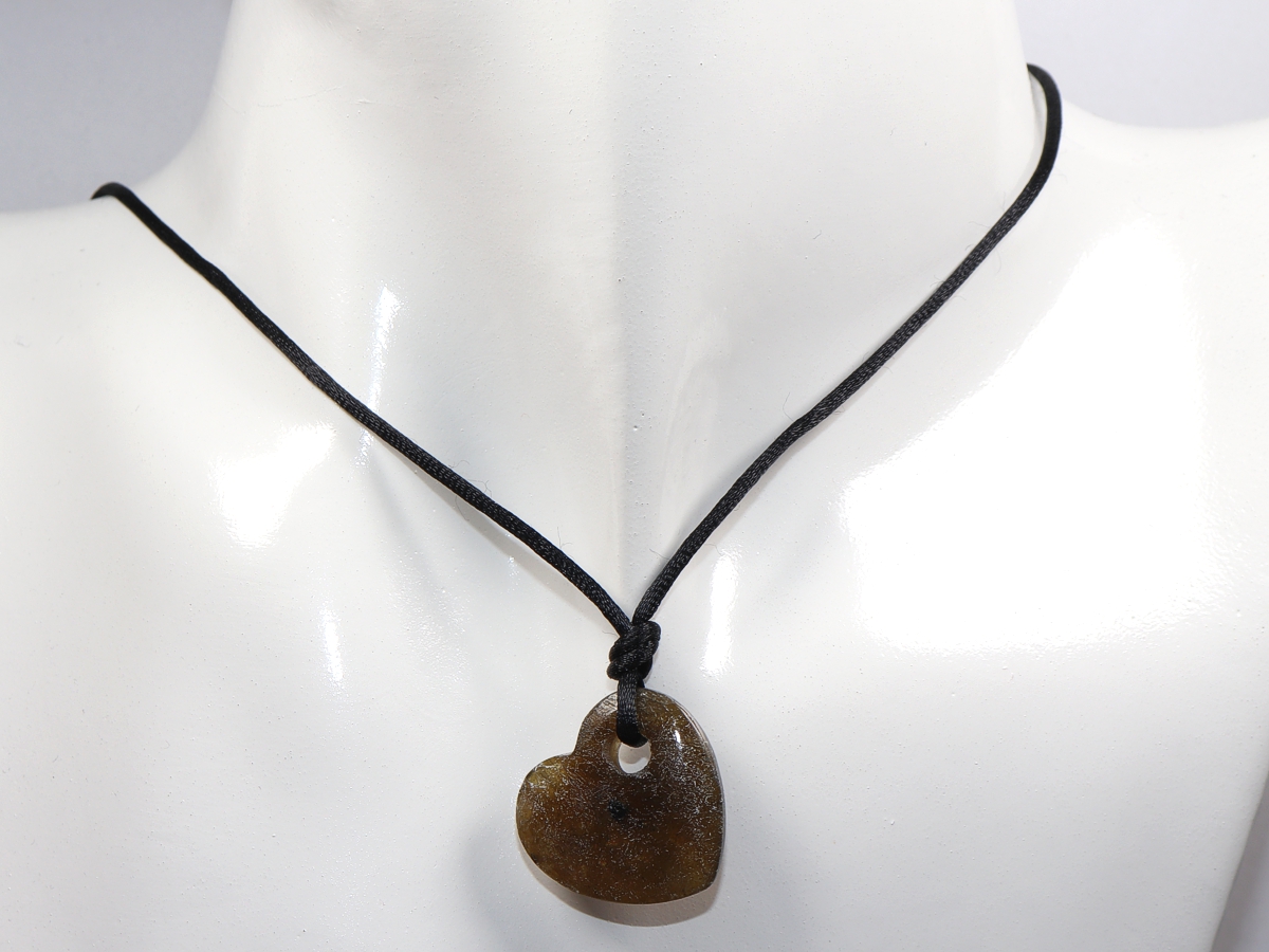 The necklace with the heart made of labradorite will be individualized according to your specifications. The cord is made of nylon and has a closure made of stainless steel.