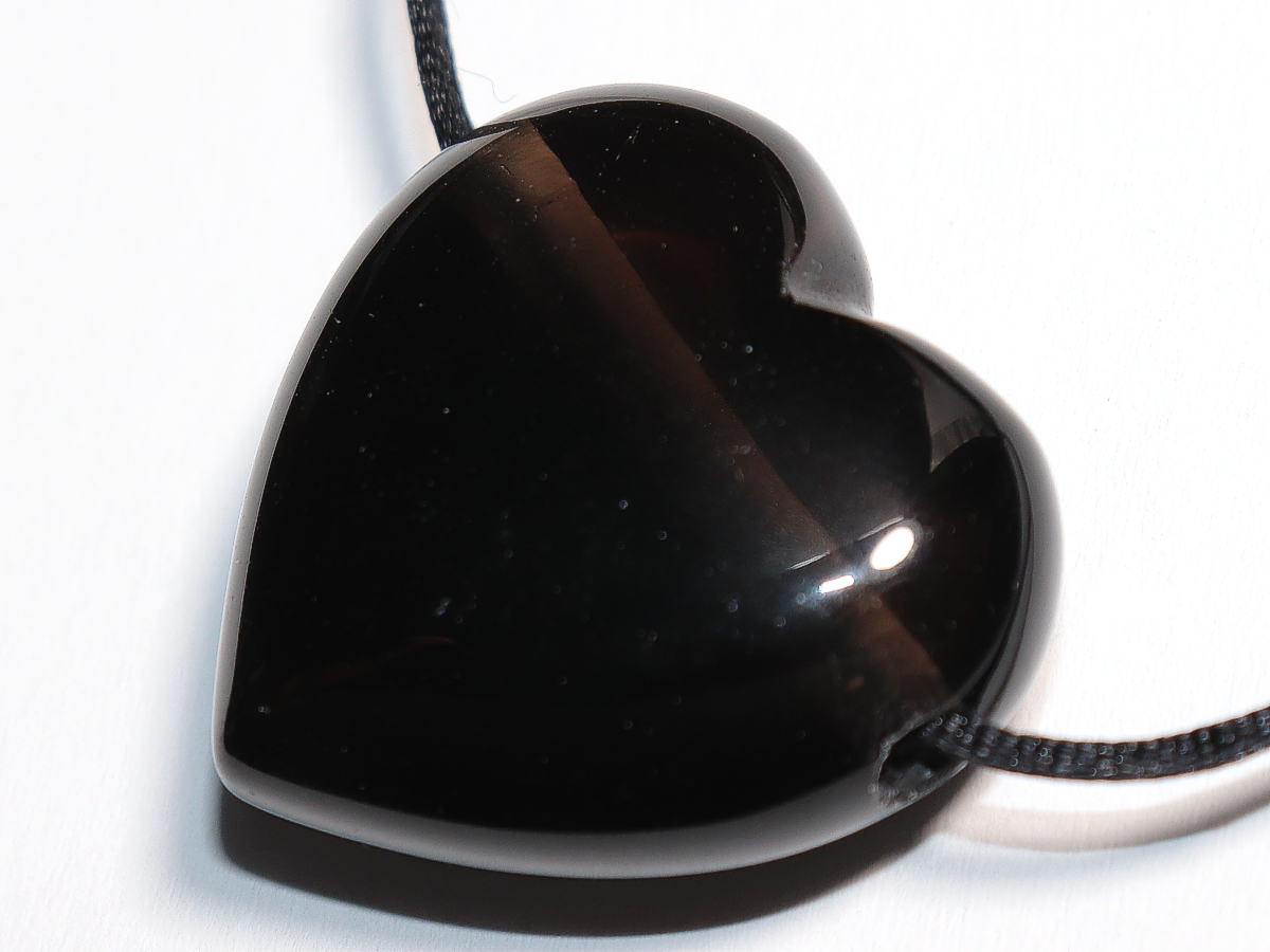 The necklace with the heart made of lamellated obsidian will be individualized according to your specifications. You have the choice between a black cord with a closure made of stainless steel or a chain made of silver 925.