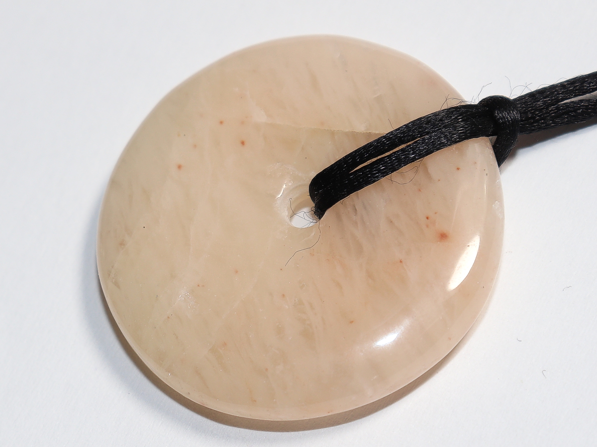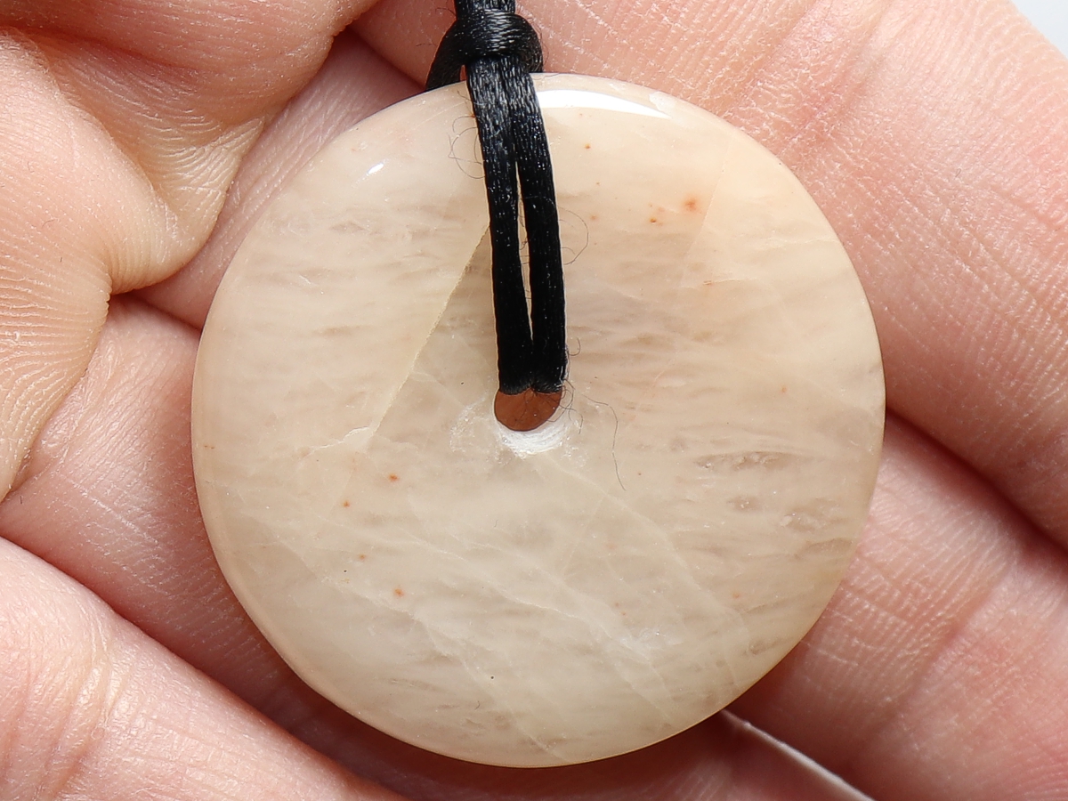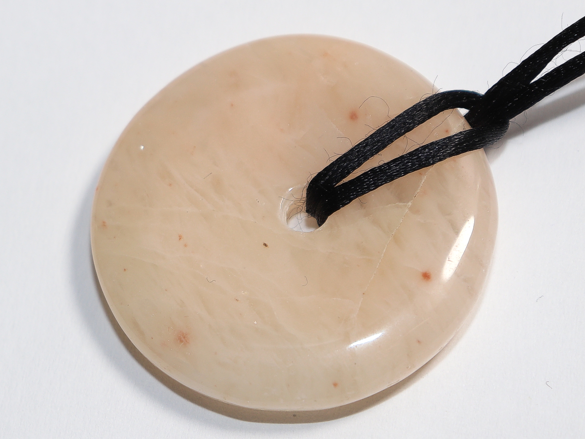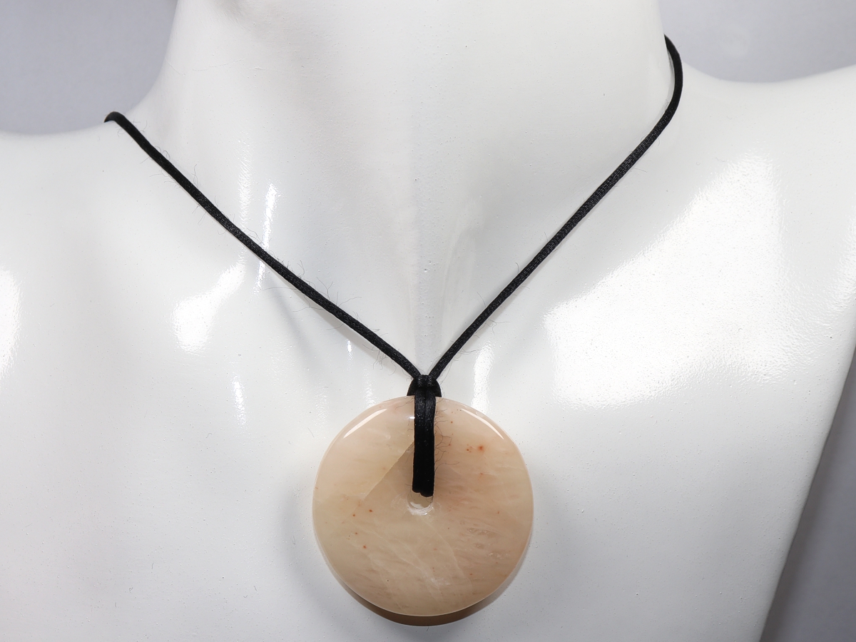 The necklace with the donut made of moonstone and a black cord will be individualized according to your specifications. The closure is made of stainless steel.