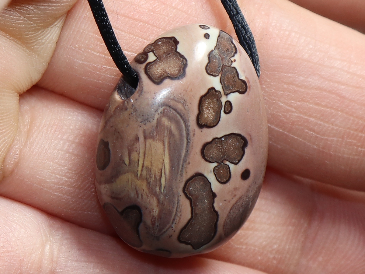 The necklace with porcellanite will be individualized according to your specifications. You have the choice between a black cord with a closure made of stainless steel or a chain made of silver 925.
