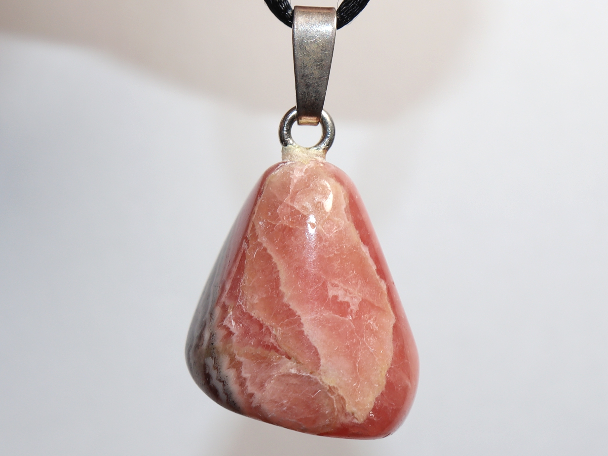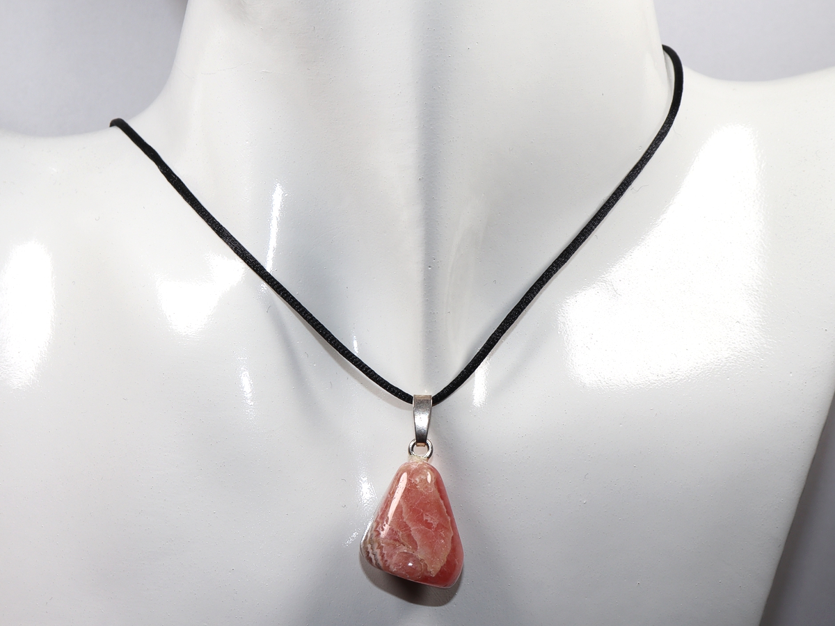 The necklace with rhodochrosite will be individualized according to your specifications. You have the choice between a black cord with a closure made of stainless steel or a chain made of silver 925.