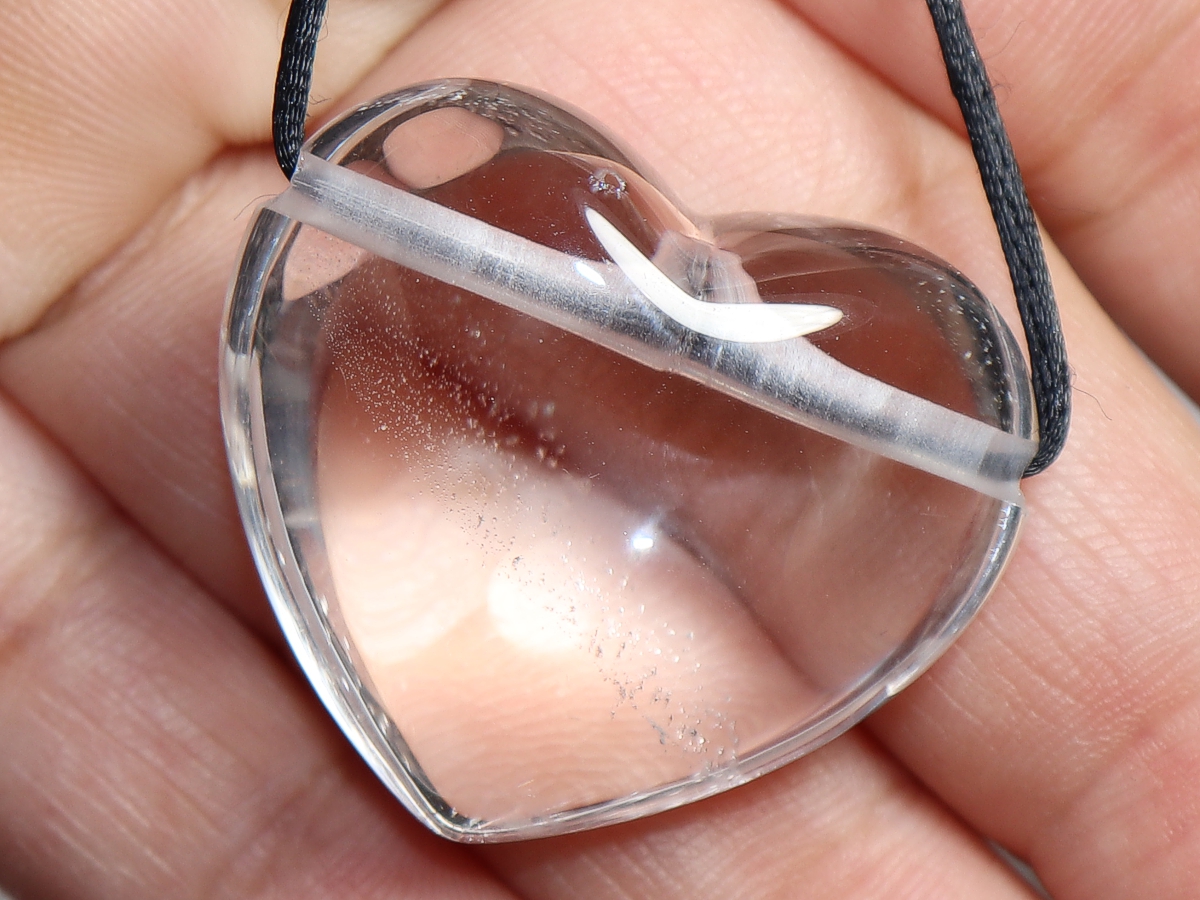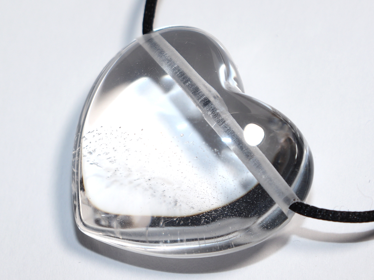The necklace with the heart made of rock crystal will be individualized according to your specifications. You have the choice between a black cord with a closure made of stainless steel or a chain made of silver 925.