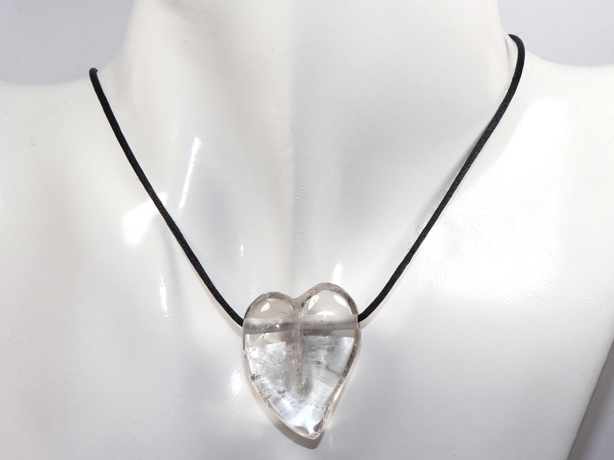 The necklace with the heart made of rock crystal will be individualized according to your specifications. You have the choice between a black cord with a closure made of stainless steel or a chain made of silver 925.