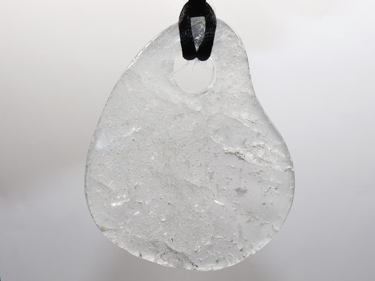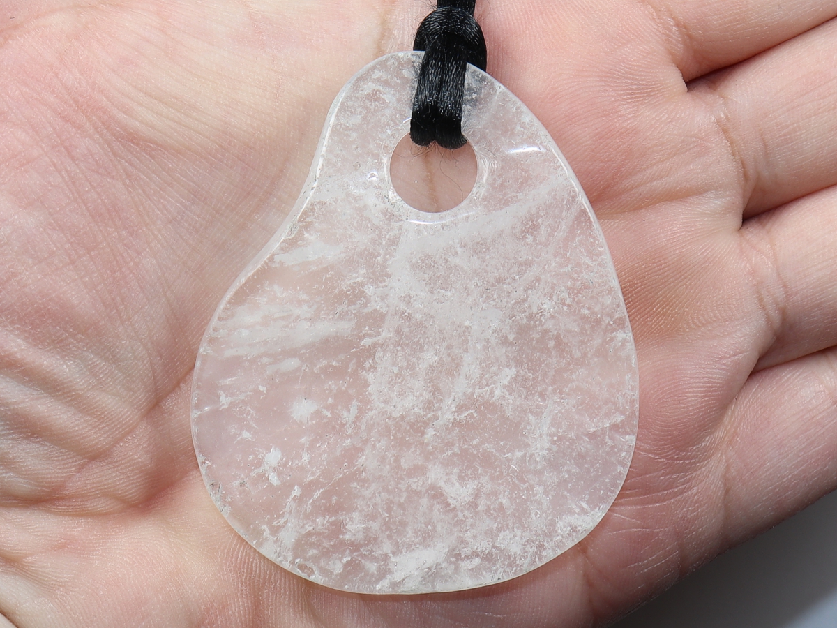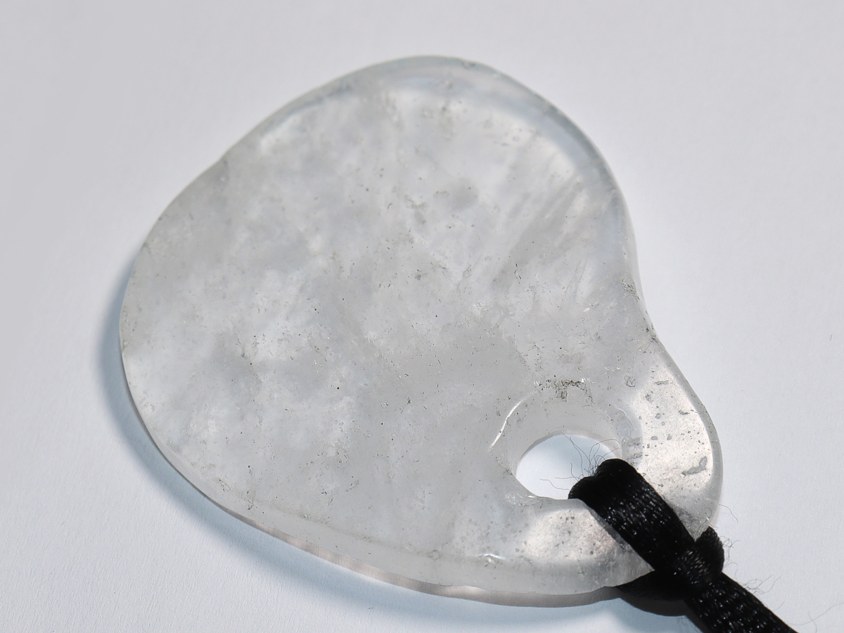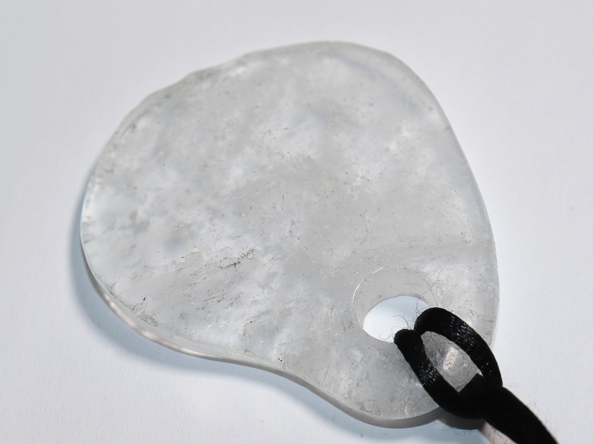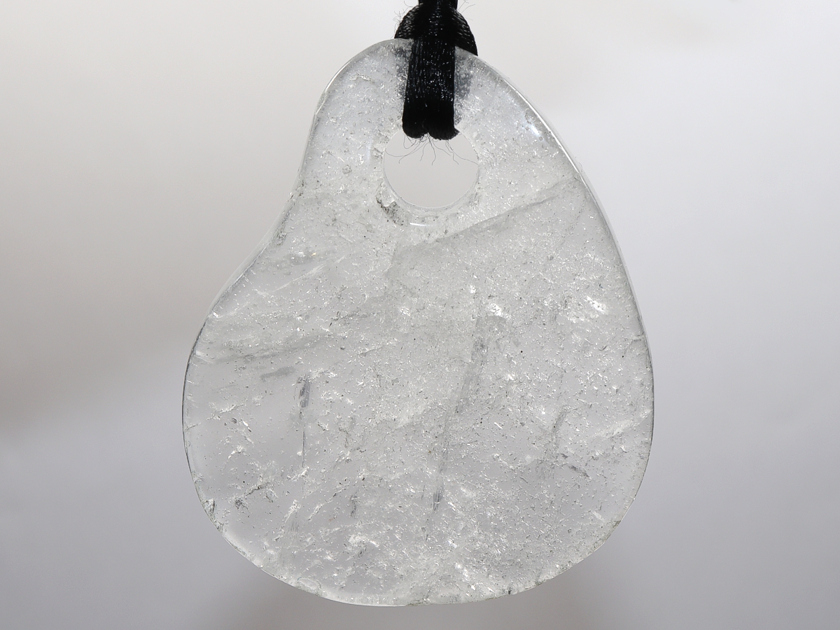 The pendant made of rock crystal will be delivered with a black nylon cord.