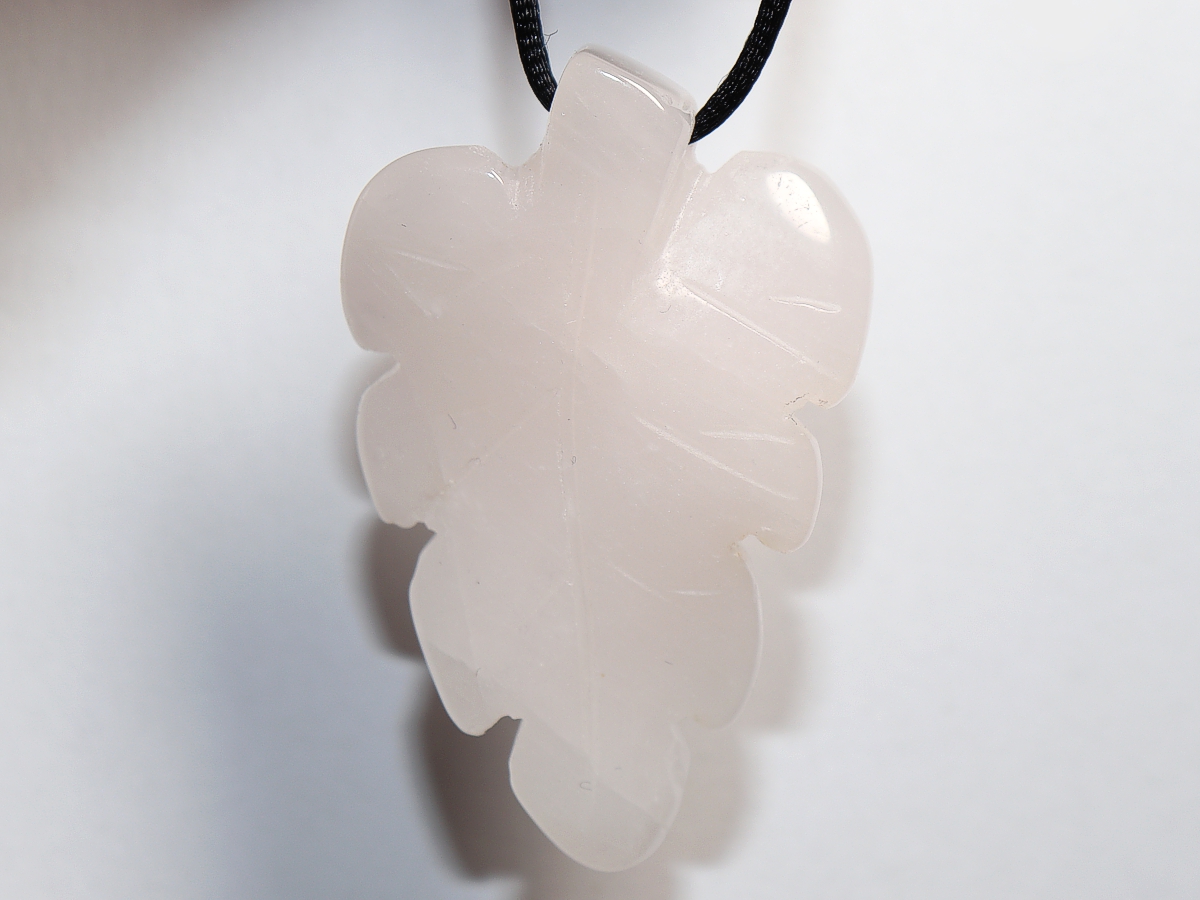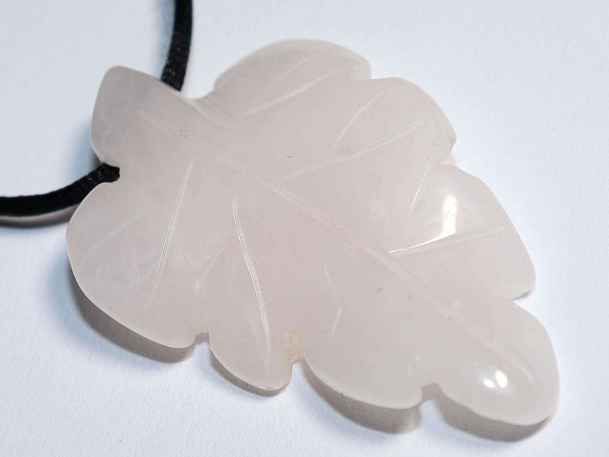 The necklace with the leaf made of rose quartz will be individualized according to your specifications. You have the choice between a black cord with a closure made of stainless steel or a chain made of silver 925.