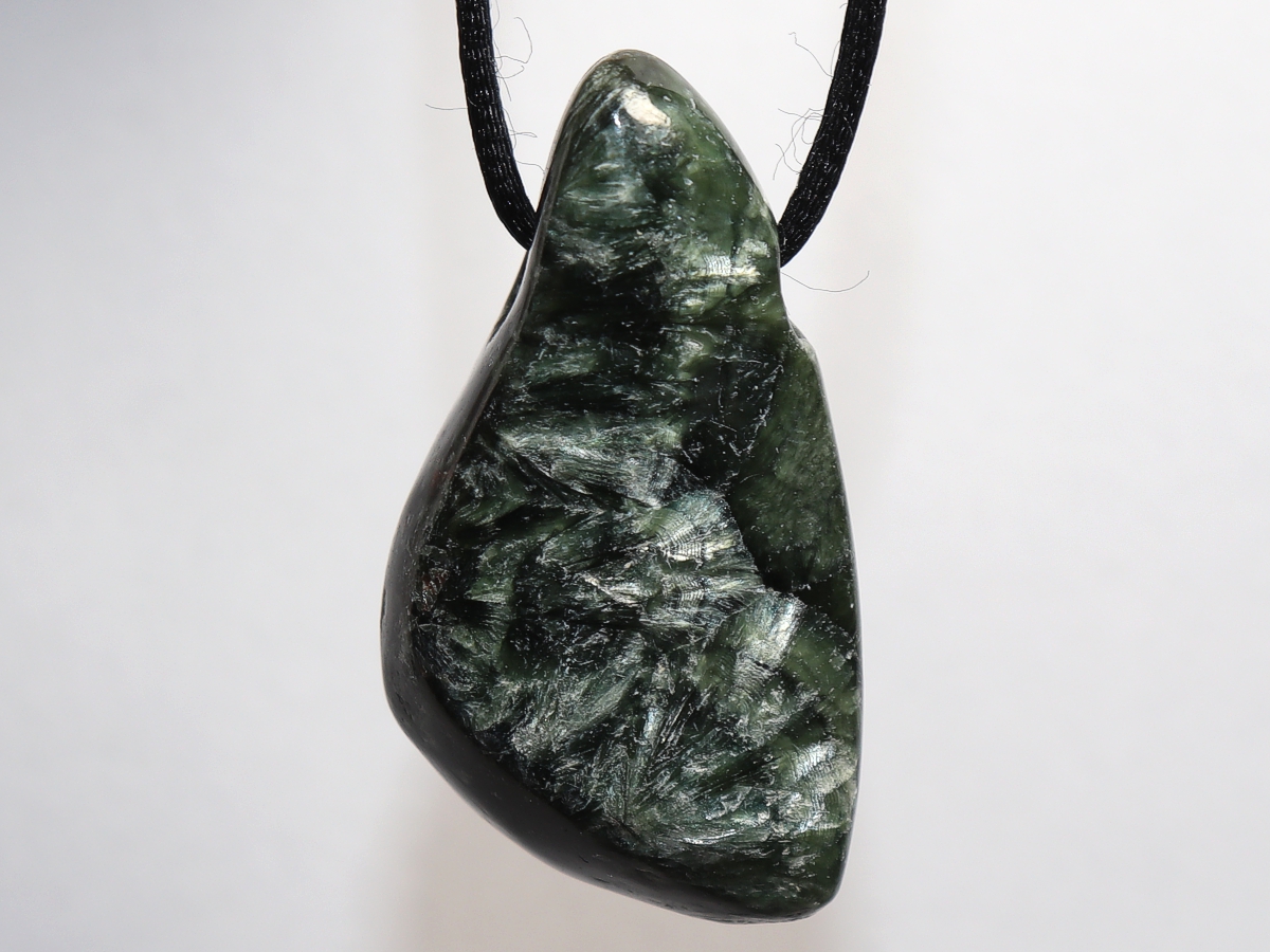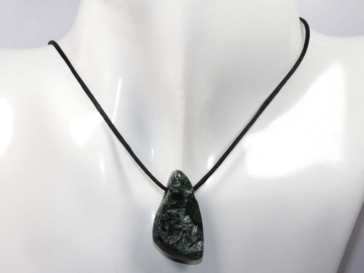 The necklace with seraphinite will be individualized according to your specifications. You have the choice between a black cord with a closure made of stainless steel or a chain made of silver 925.