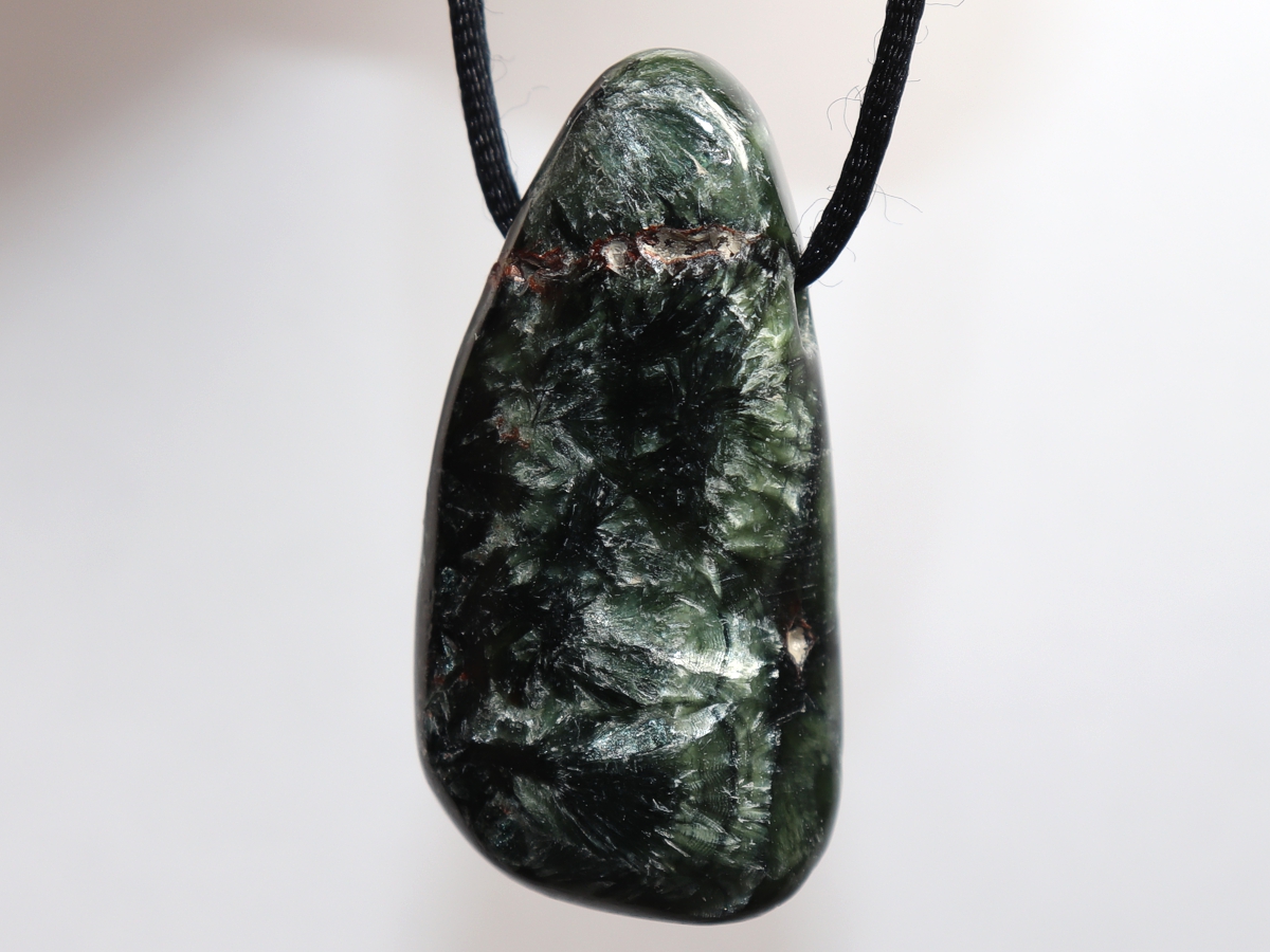 The necklace with seraphinite will be individualized according to your specifications. You have the choice between a black cord with a closure made of stainless steel or a chain made of silver 925.