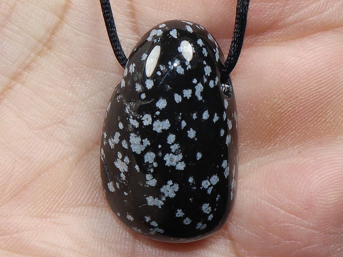The necklace with snowflake obsidian will be individualized according to your specifications. You have the choice between a black cord with a closure made of stainless steel or a chain made of silver 925.