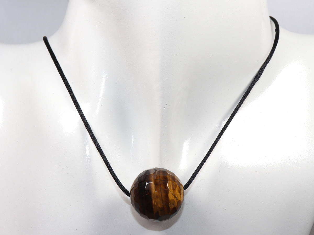 The necklace with the faceted round bead made of tiger's eye will be individualized according to your specifications. You have the choice between a black cord with a closure made of stainless steel or a chain made of silver 925.